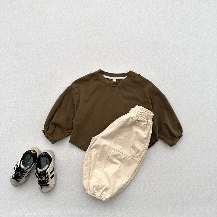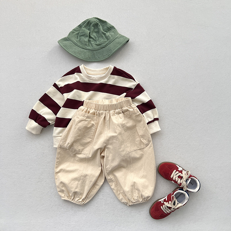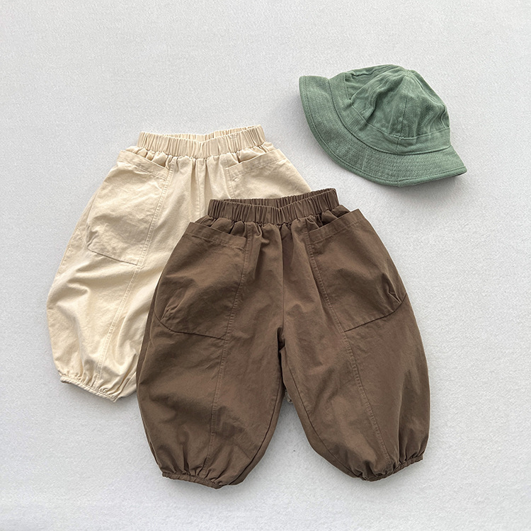 산풍 다재다능한 ~ 소년 소녀 복고풍 블루머 봄과 가을 새로운 어린이 느슨한 바지 입체 포켓 캐주얼 바지