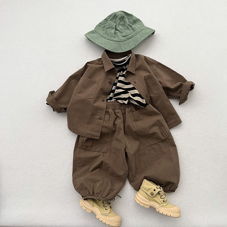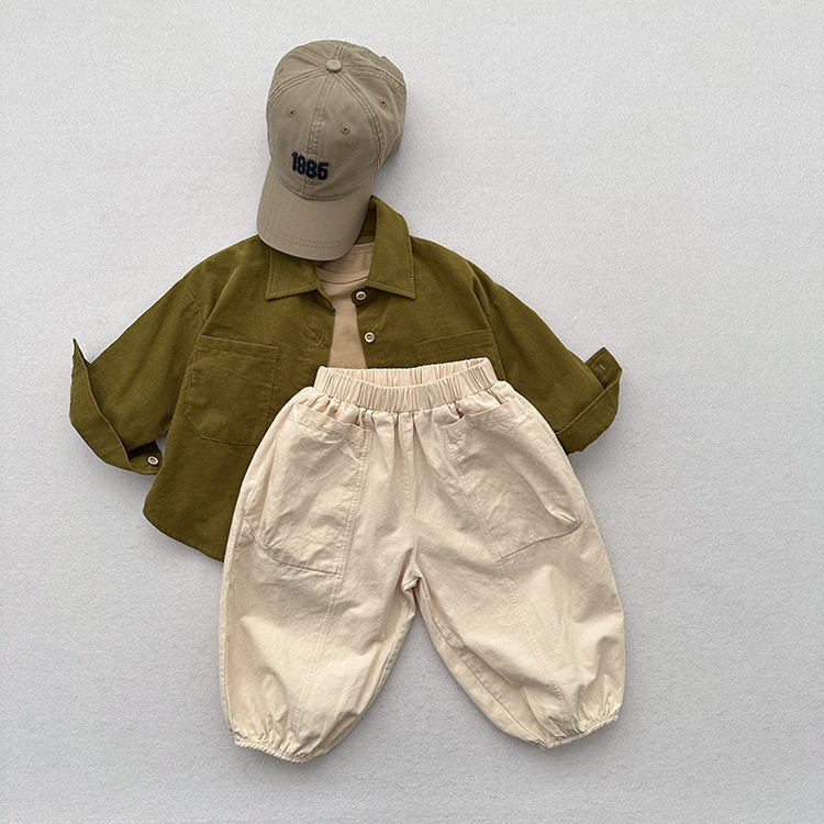 산풍 다재다능한 ~ 소년 소녀 복고풍 블루머 봄과 가을 새로운 어린이 느슨한 바지 입체 포켓 캐주얼 바지스토어 가기