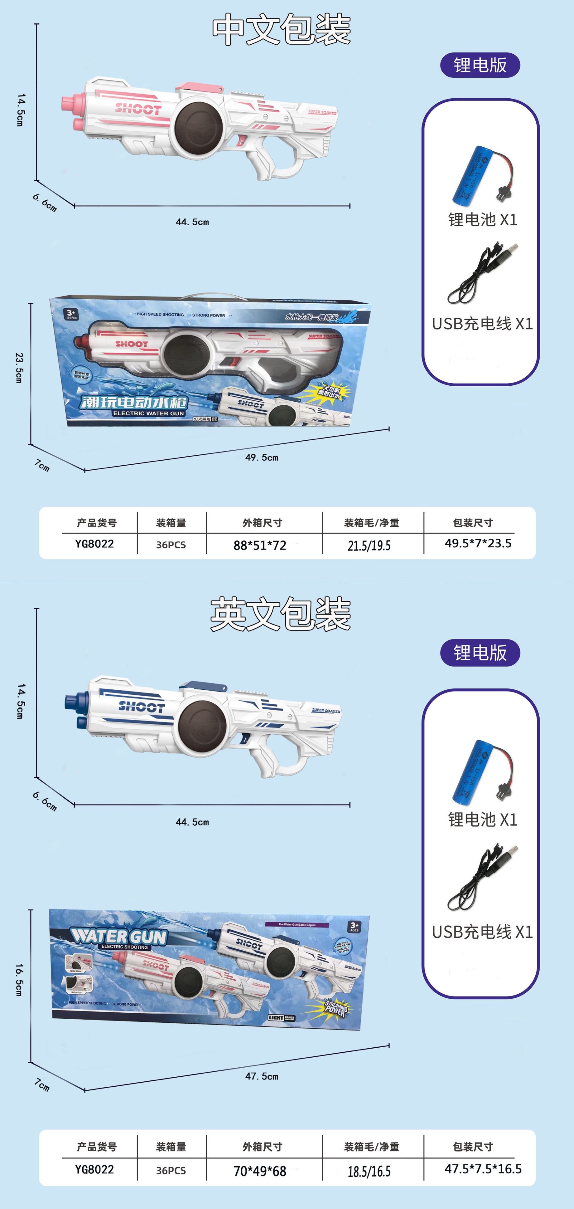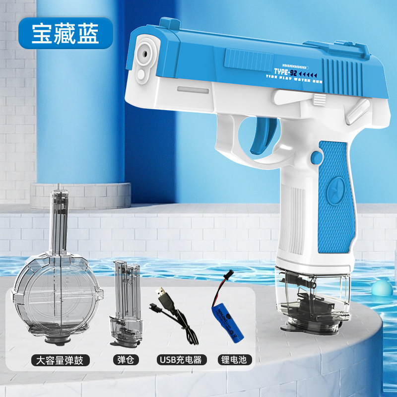 • 조수 놀이 전기 물총 [블루 충전 버전] 영어 컬러 박스