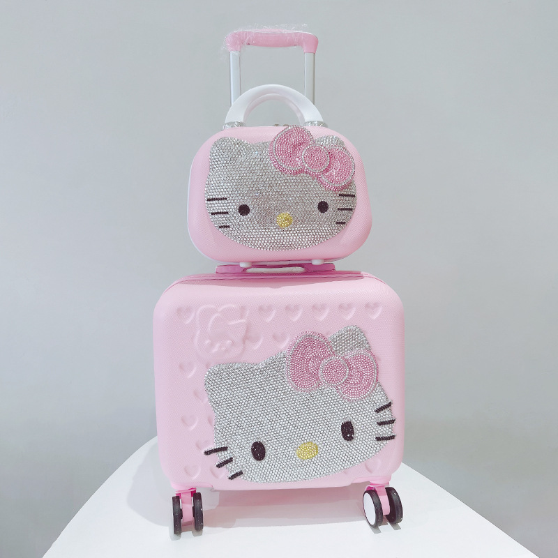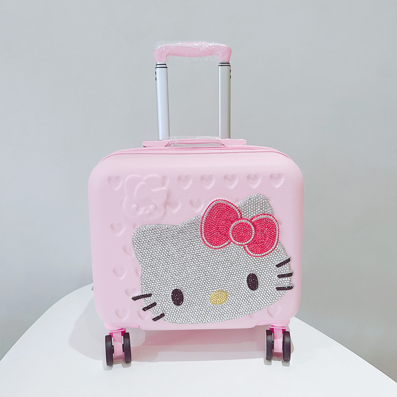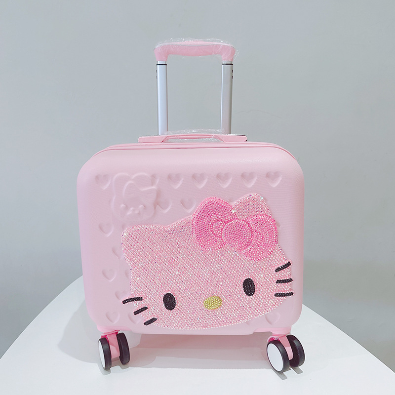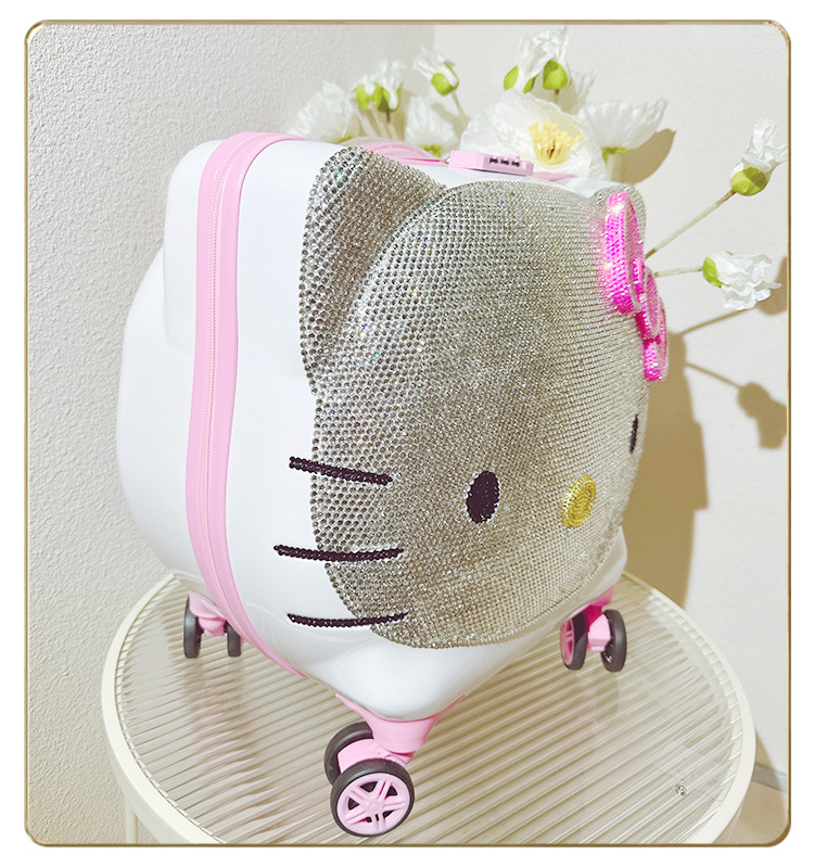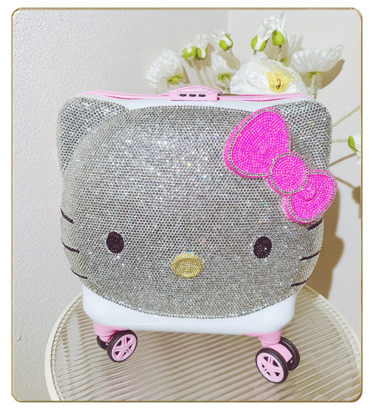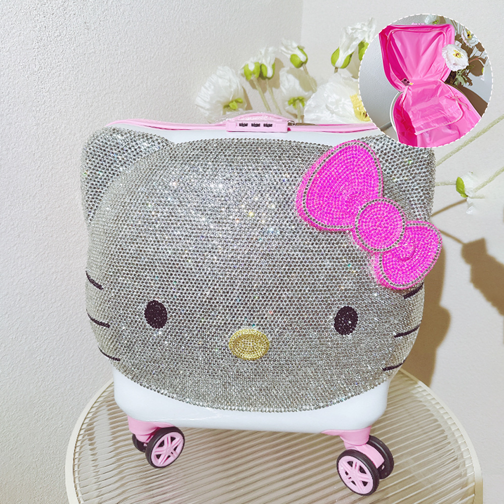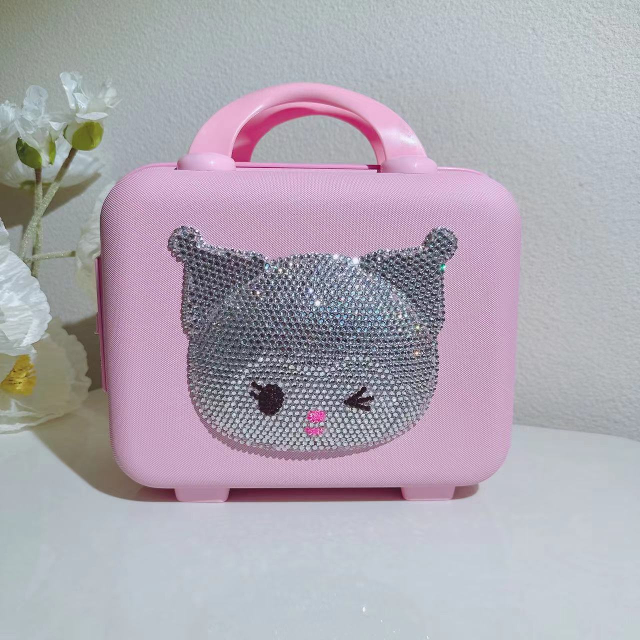 어린이 고양이 수하물 16 인치 엄마와 아이 가방 소녀 심장 핑크 스티커 다이아몬드 트롤리 케이스 학생 탑승 상자스토어 가기