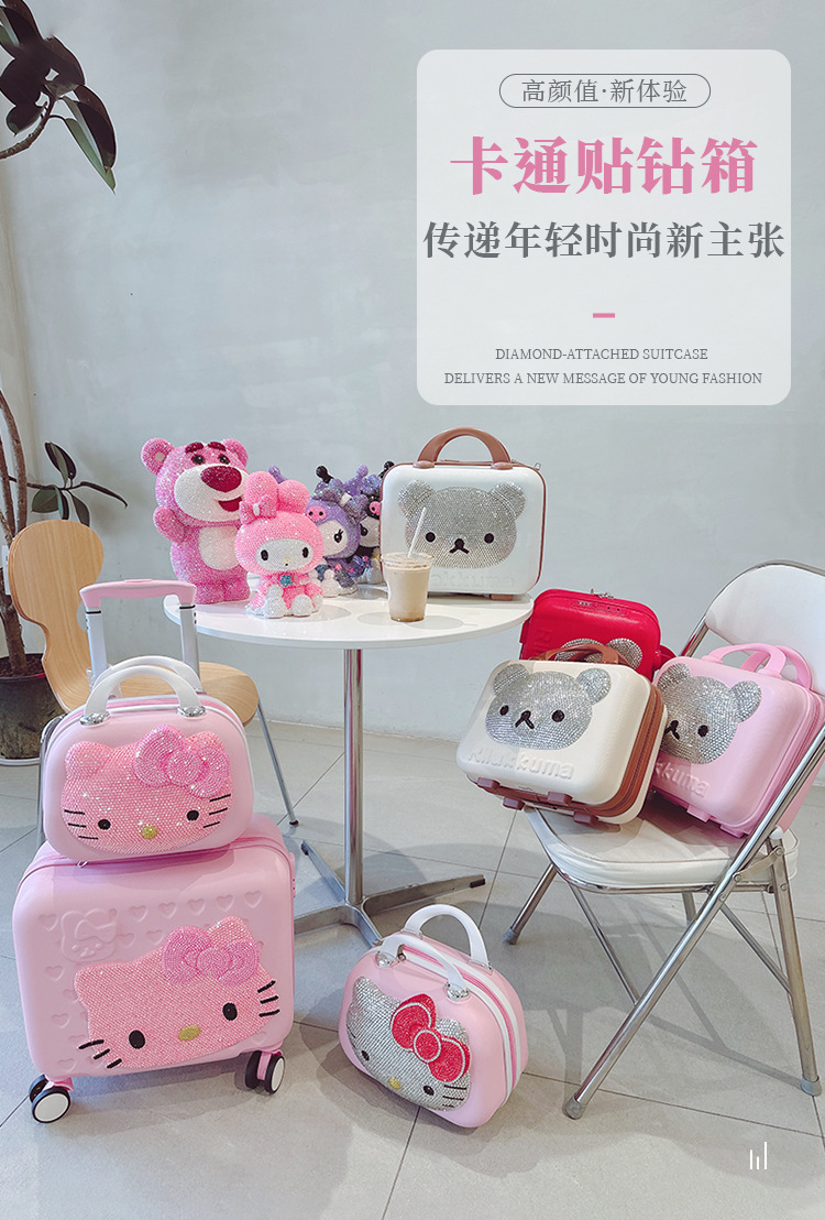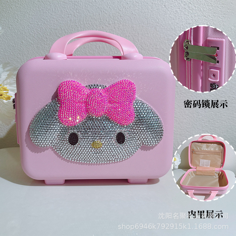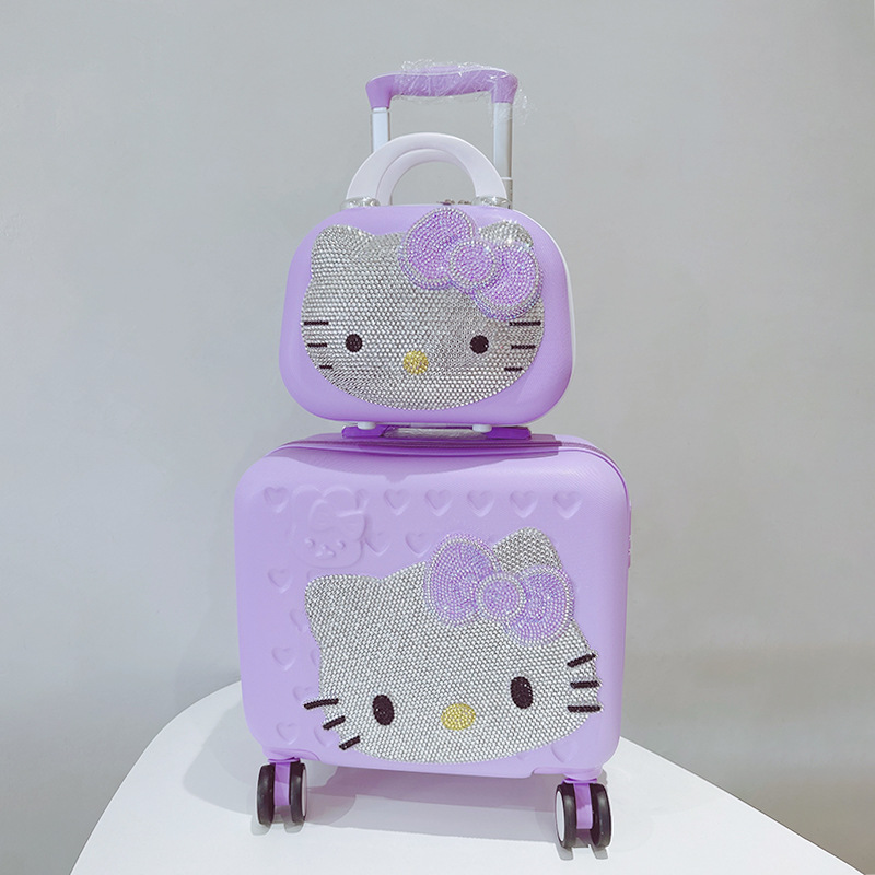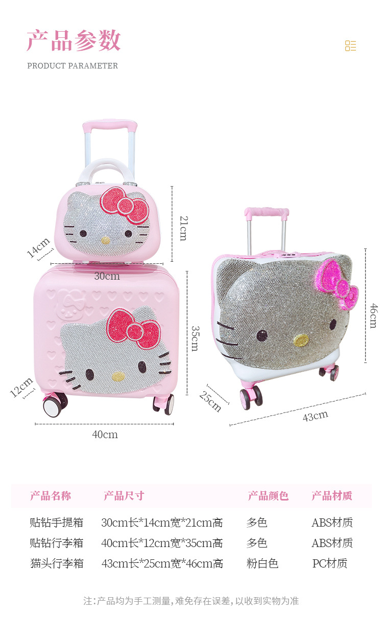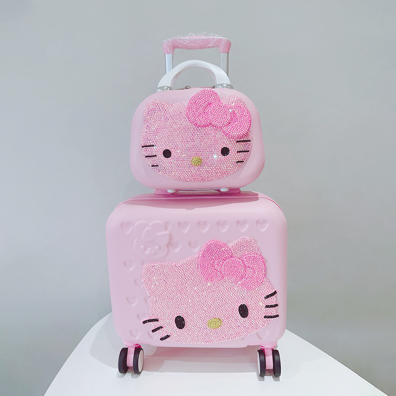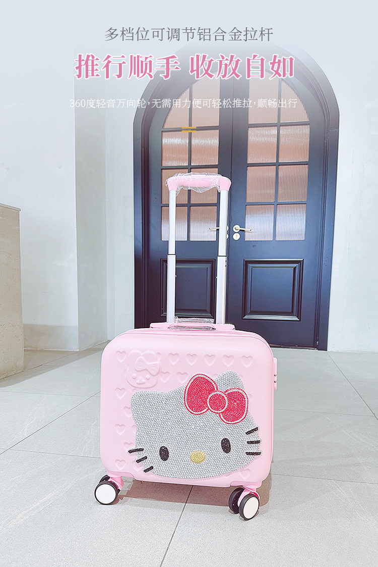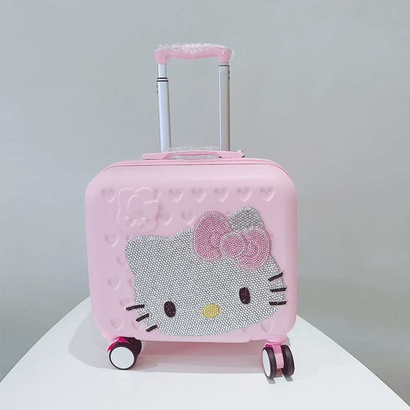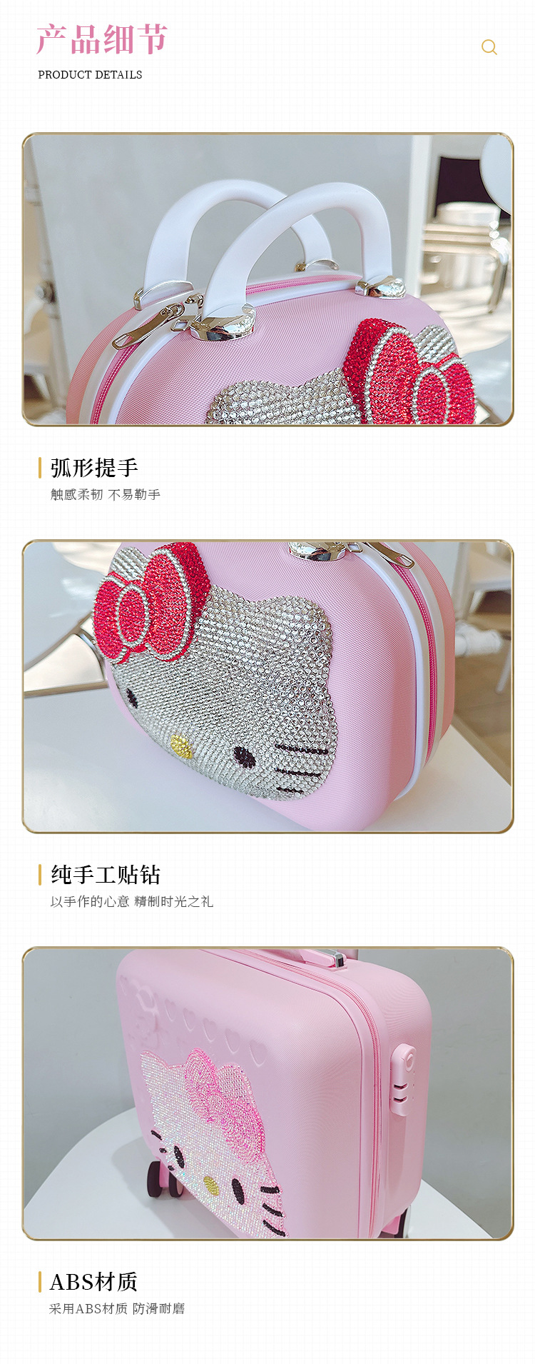 어린이 고양이 수하물 16 인치 엄마와 아이 가방 소녀 심장 핑크 스티커 다이아몬드 트롤리 케이스 학생 탑승 상자스토어 가기