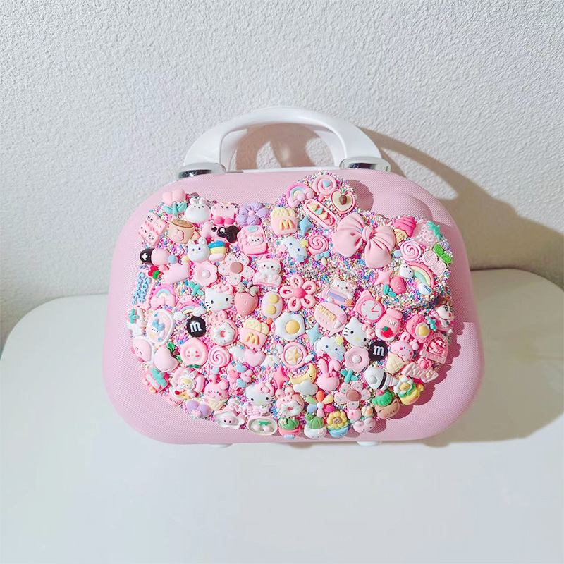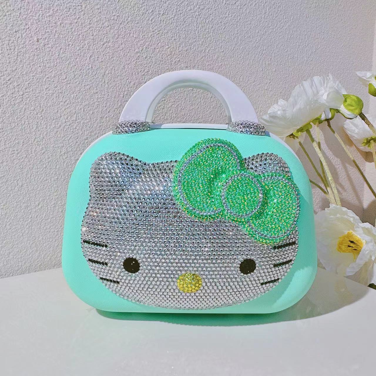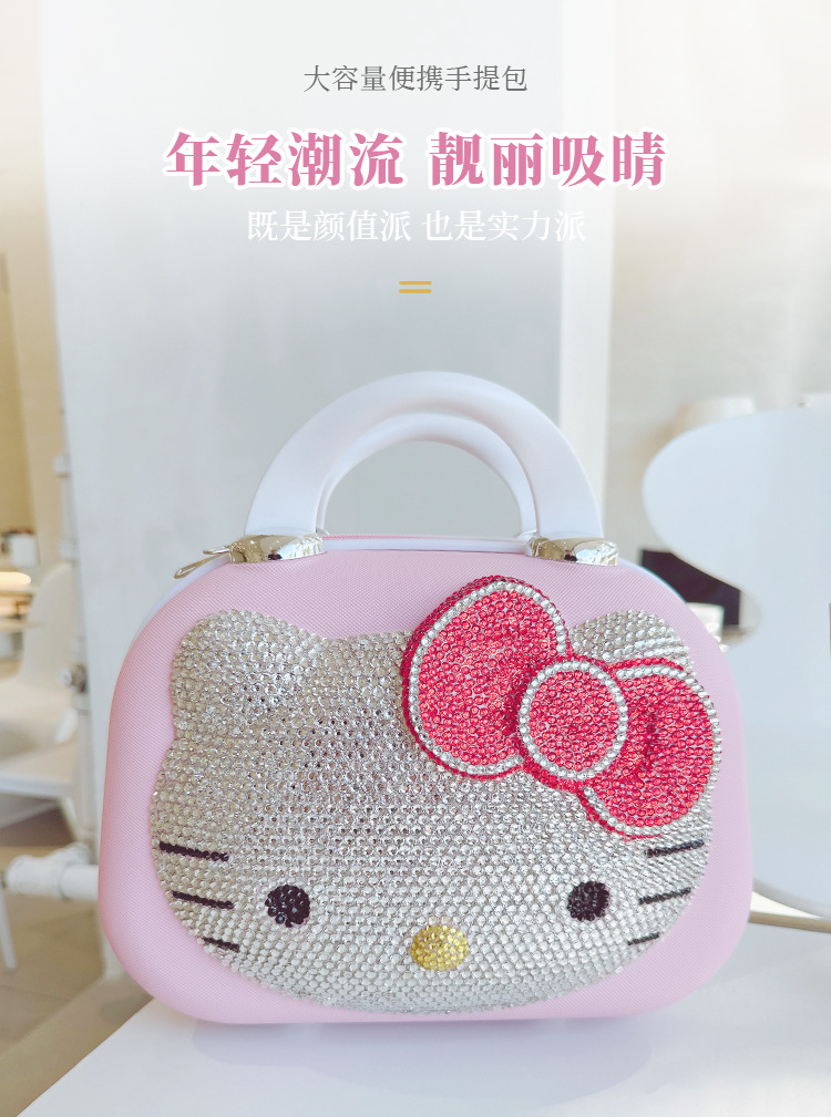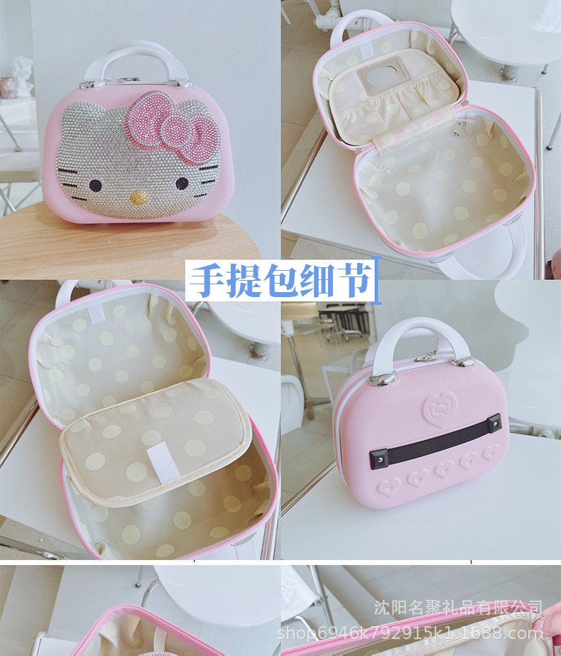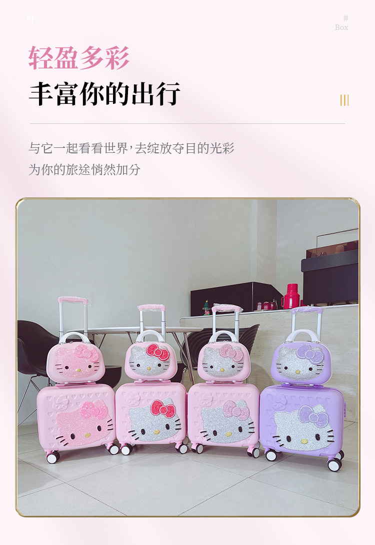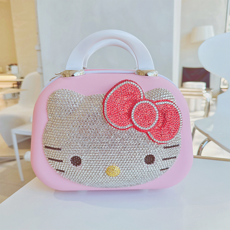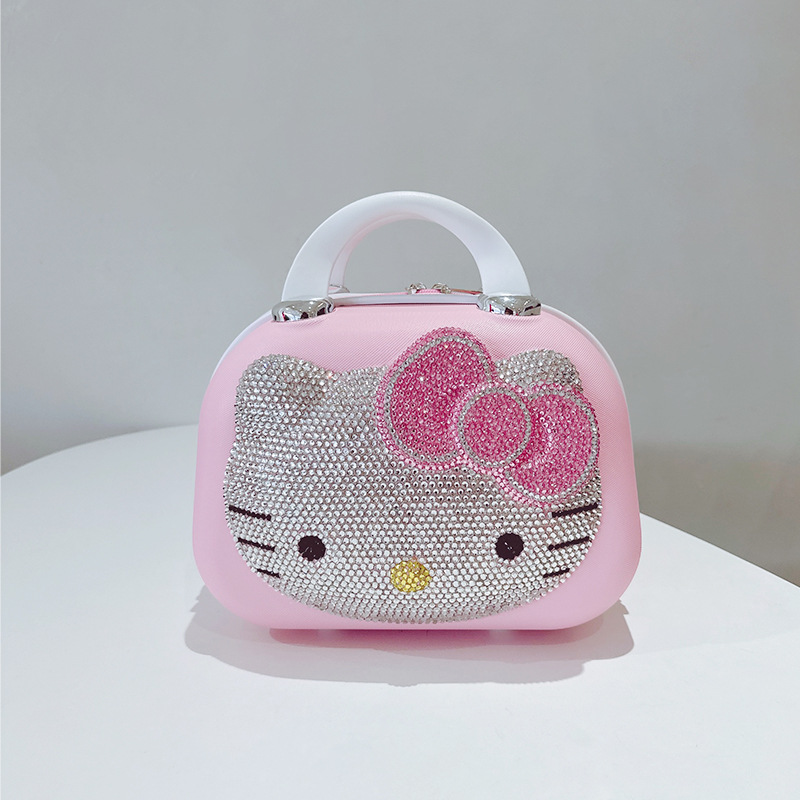 어린이 고양이 수하물 16 인치 엄마와 아이 가방 소녀 심장 핑크 스티커 다이아몬드 트롤리 케이스 학생 탑승 상자스토어 가기