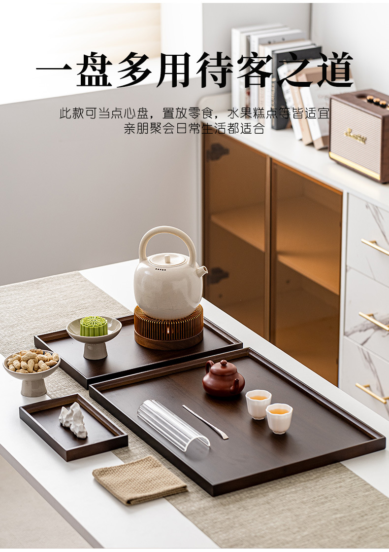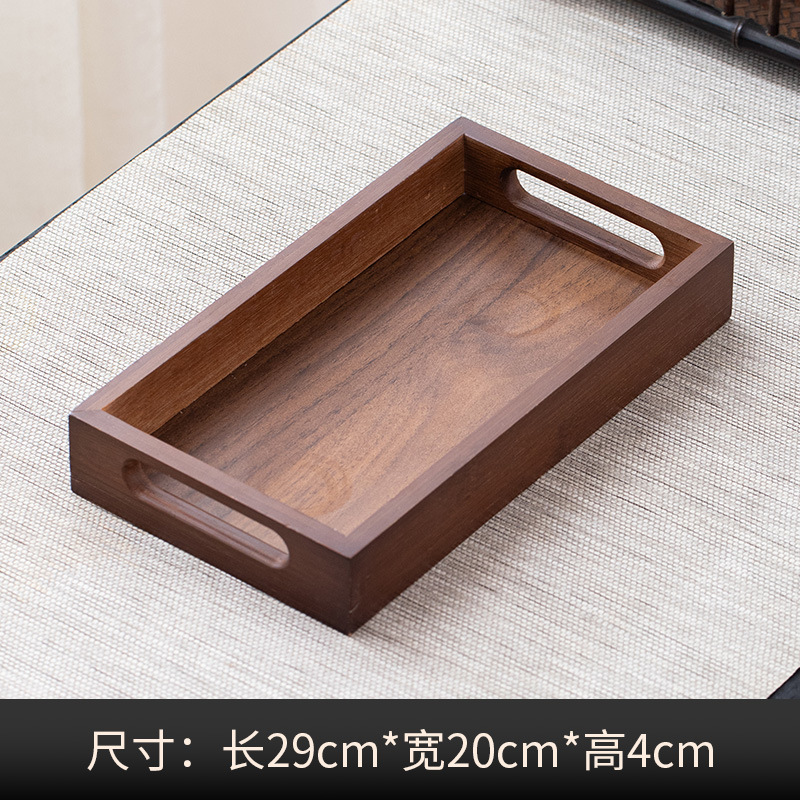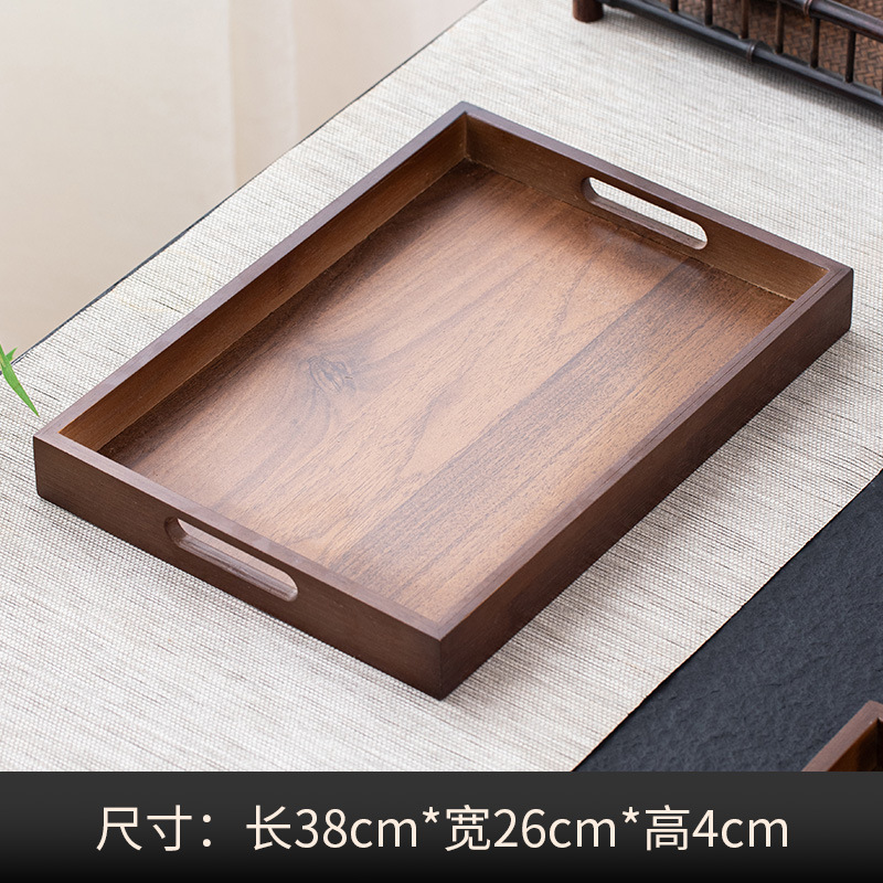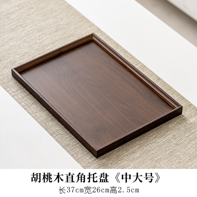 나무 쟁반 호두 차 쟁반 거실 나무 저장 판 단단한 나무 디너 플레이트 조각 된 로고 트레이 티 컵