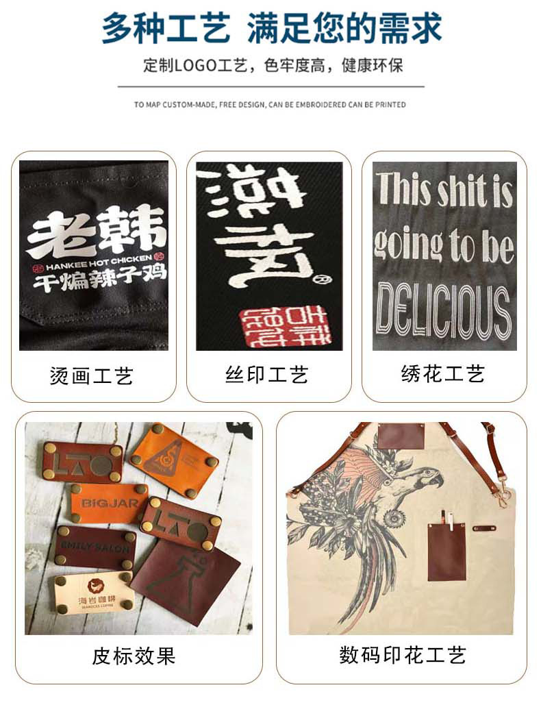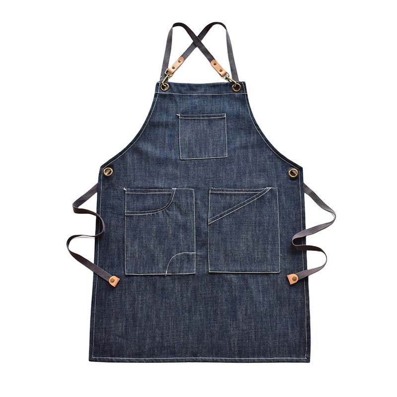 맞춤형 고품질 데님 앞치마 상업용 밀크티 가게 바리스타 케이터링 주방 캔버스 스트랩 작업복
