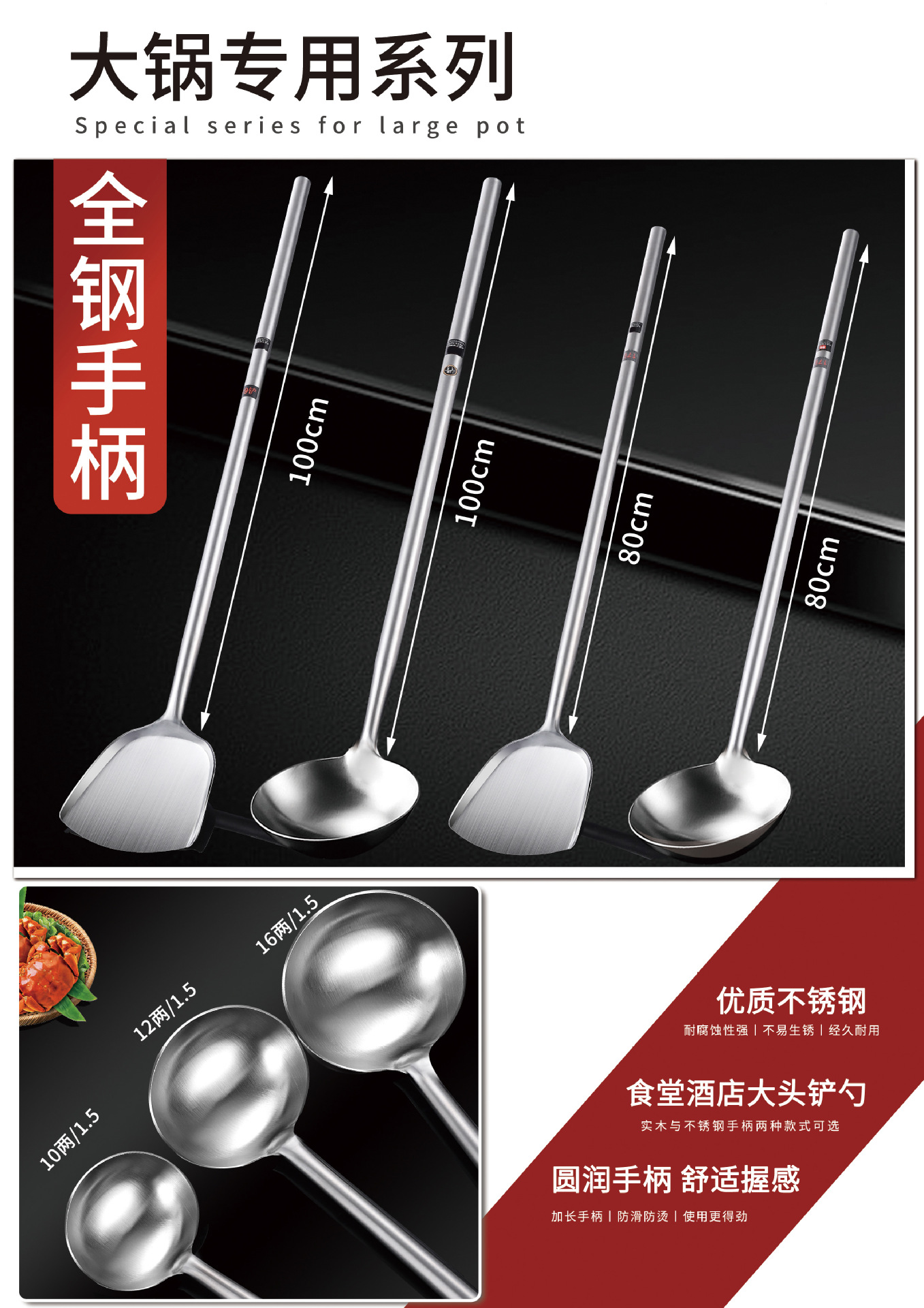 • 1.2 두꺼운 강철 손잡이 6 개의 튀긴 숟가락 [길이 46cm * 폭 11.5]