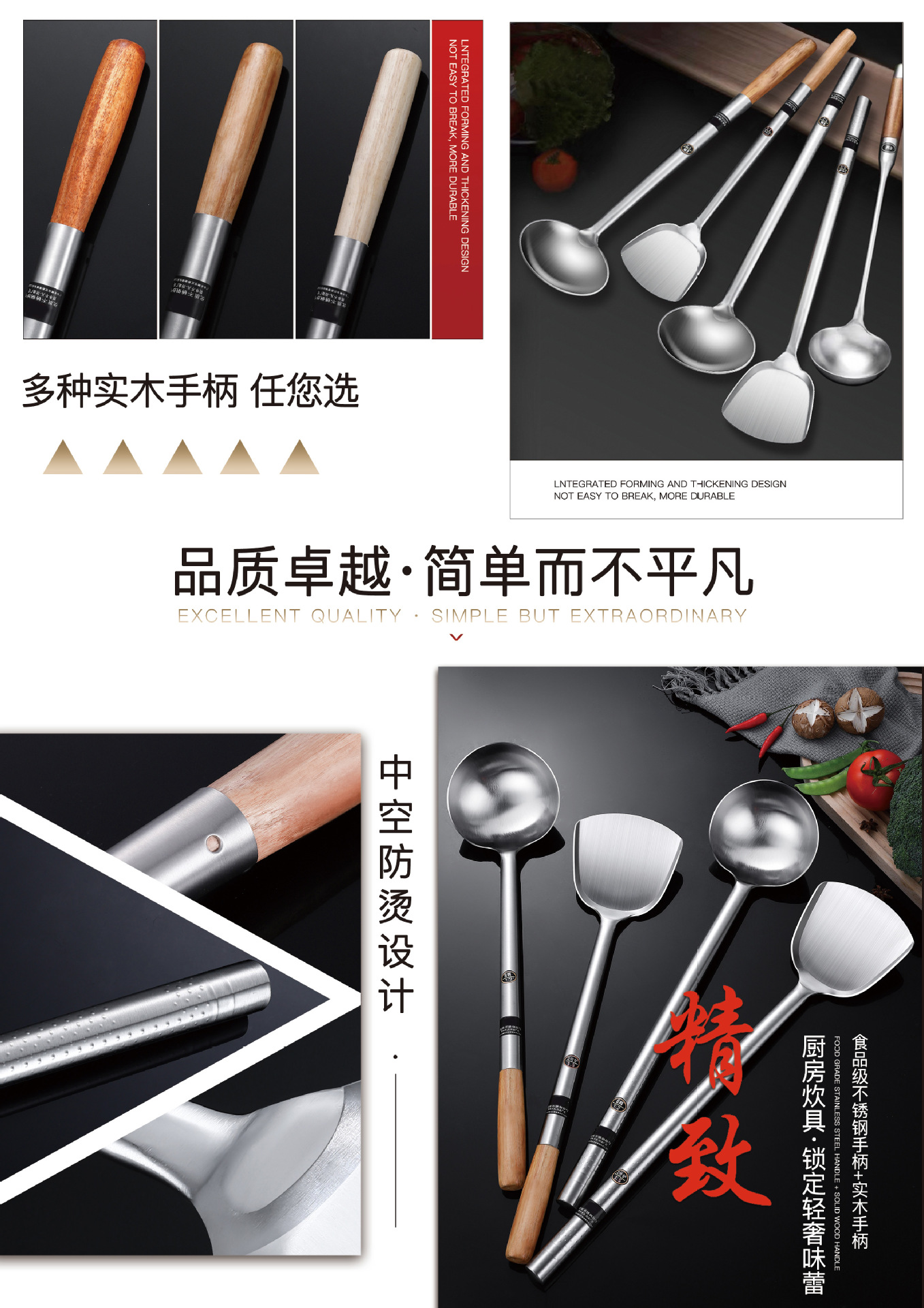 • 1.2 두꺼운 나무 손잡이 4 개의 튀긴 숟가락 [길이 45cm * 너비 10.5cm]