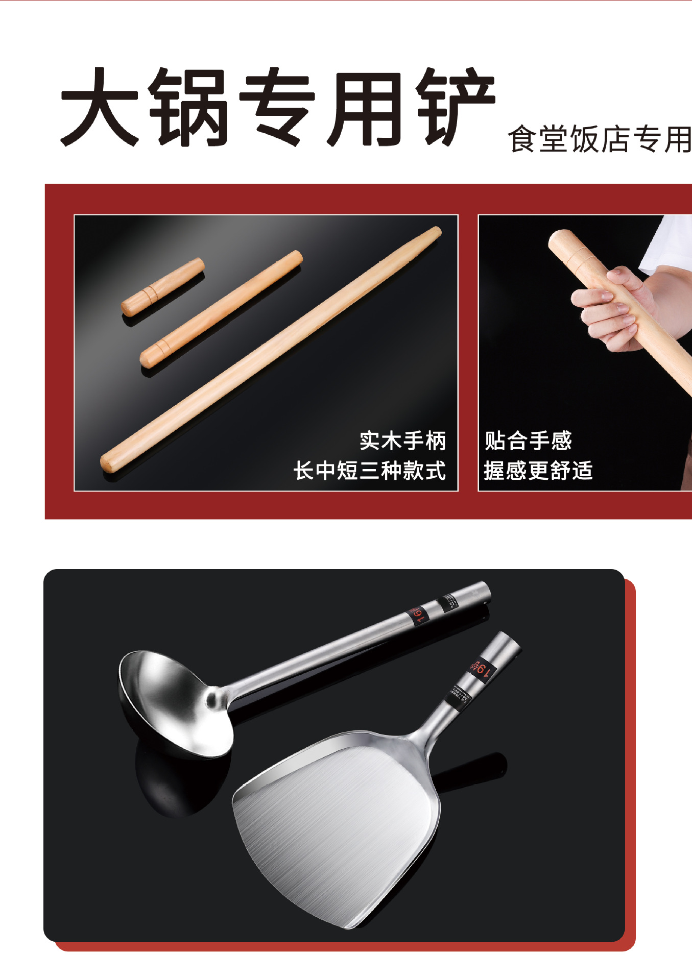 • 1.2 두꺼운 나무 손잡이 2 호 요리사 삽 [길이 50.5cm * 폭 12.5cm]]
