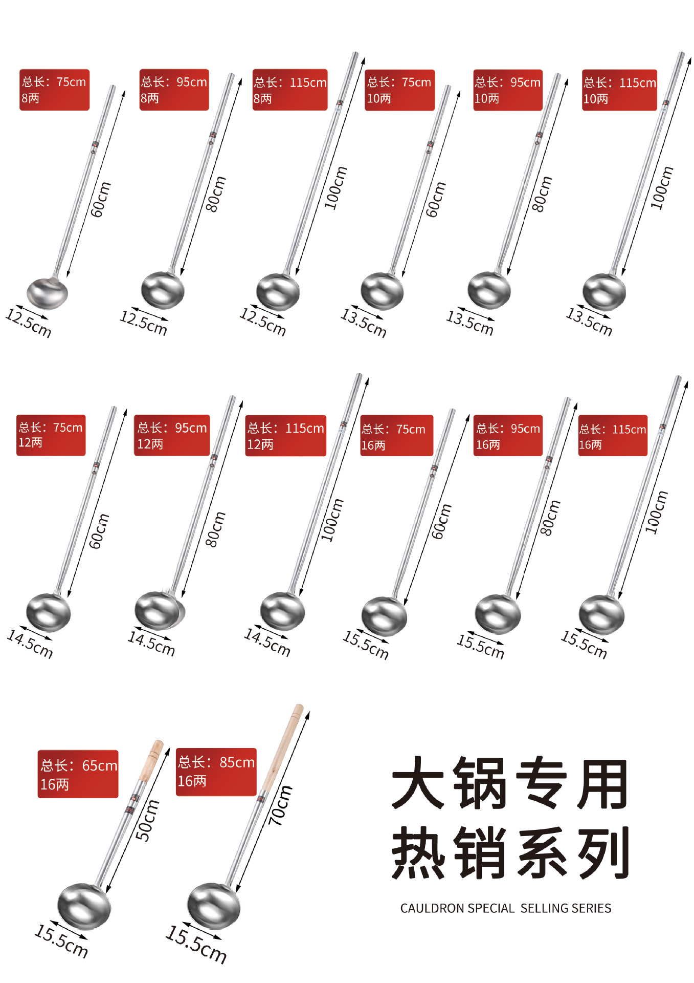 • 1.2 두꺼운 나무 손잡이 6 개의 튀긴 숟가락 [길이 50cm * 폭 11.5cm]]