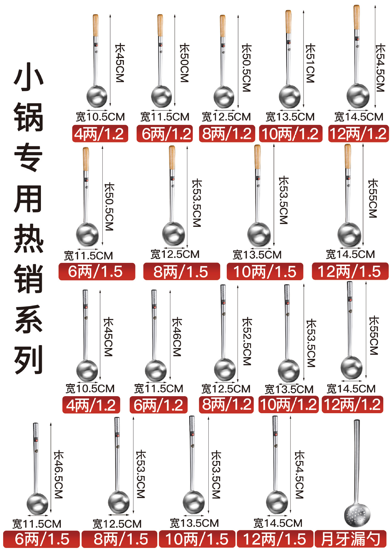 • 1.2 두꺼운 나무 손잡이 12 개의 튀긴 숟가락 [길이 54.5cm * 폭 14.5cm]]
