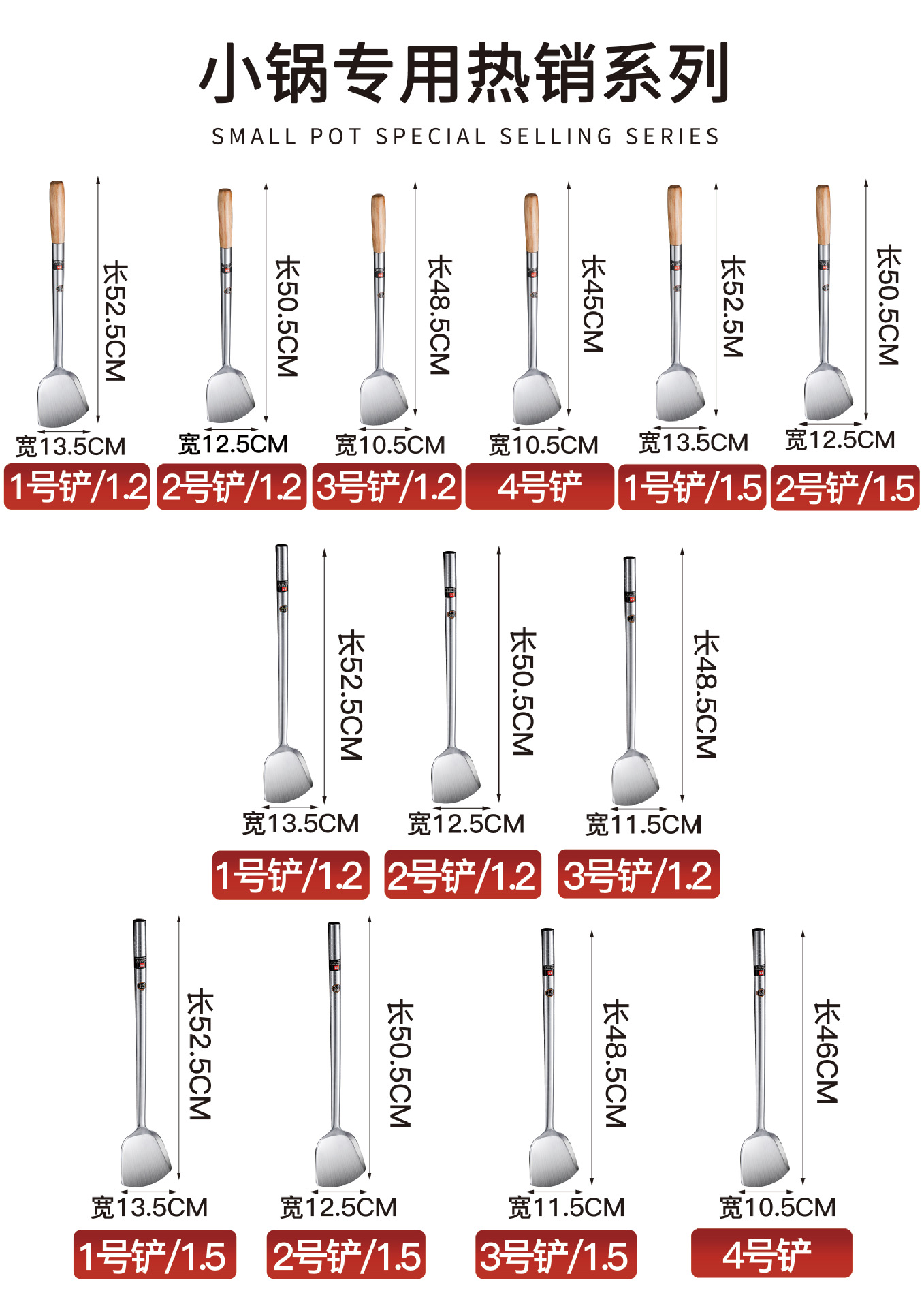 • 1.2 두꺼운 강철 손잡이 1 호 요리사 삽 [길이 52.5cm * 폭 13.5cm]]