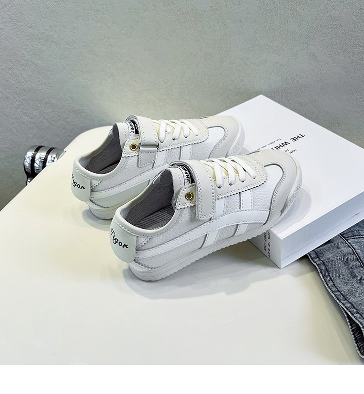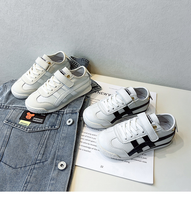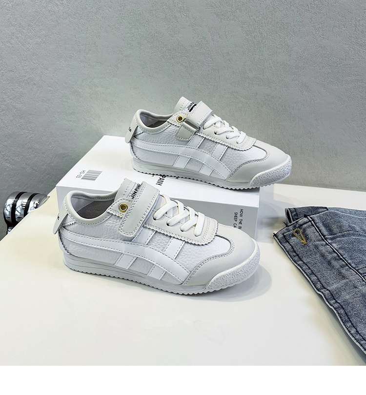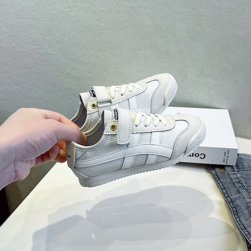어린이 운동화 2023 가을 새 소년 안티 킥 캐주얼 아르간 신발 소녀의 한국식 중형 및 대형 어린이 흰색 신발