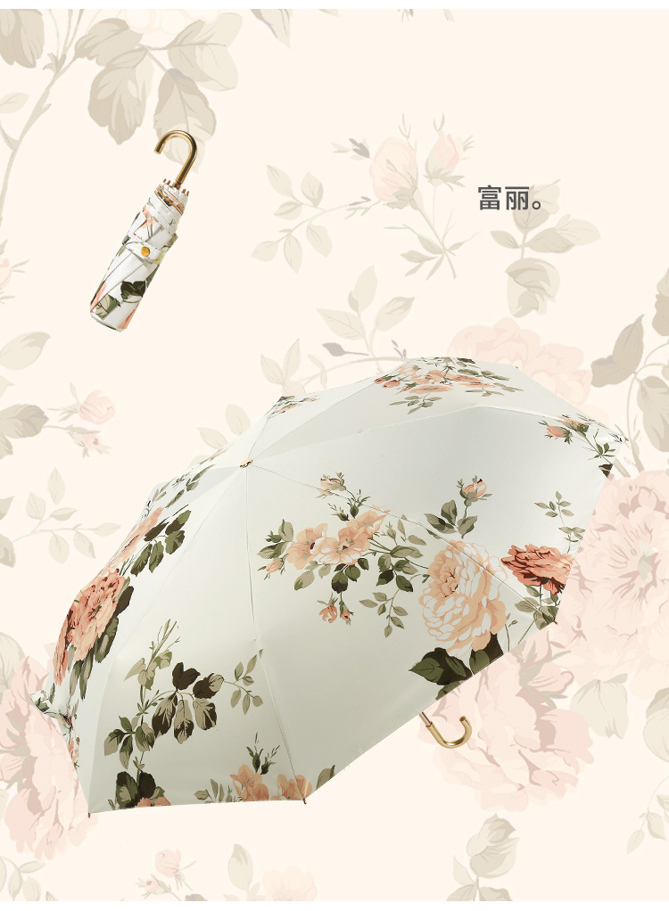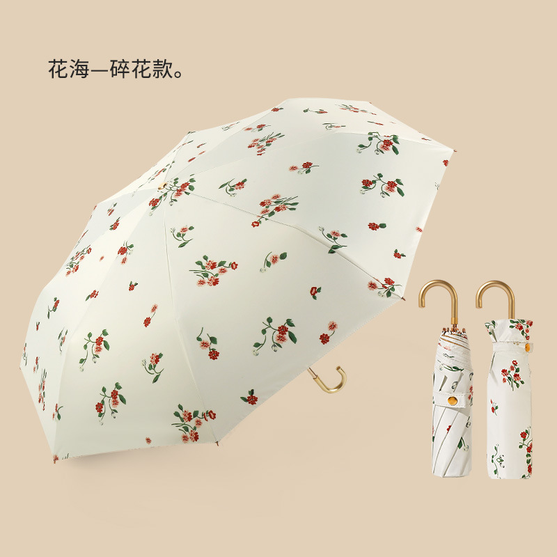 울트라 라이트 3 배 골드 후크 우산 컬러 인쇄 골드 접착제 빈티지 비 이중 사용 접이식 우산 태양 보호 차양 우산스토어 가기