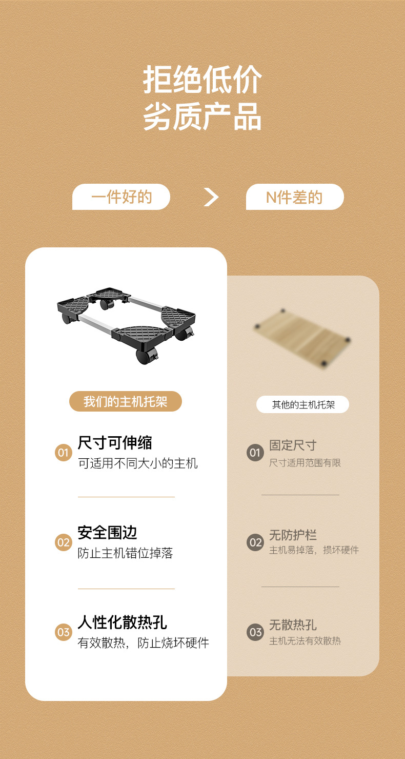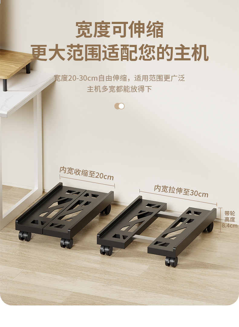 컴퓨터 본체 거치대 이동식 냉각대 가정용 사무실용 케이스 바퀴 달린 베이스 확장형 컴퓨터 수납대