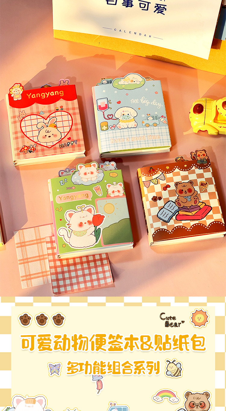 만화 귀여운 동물 접는 노트 책 귀여운 스티커 스티커 n 번 스티커 메모 책
