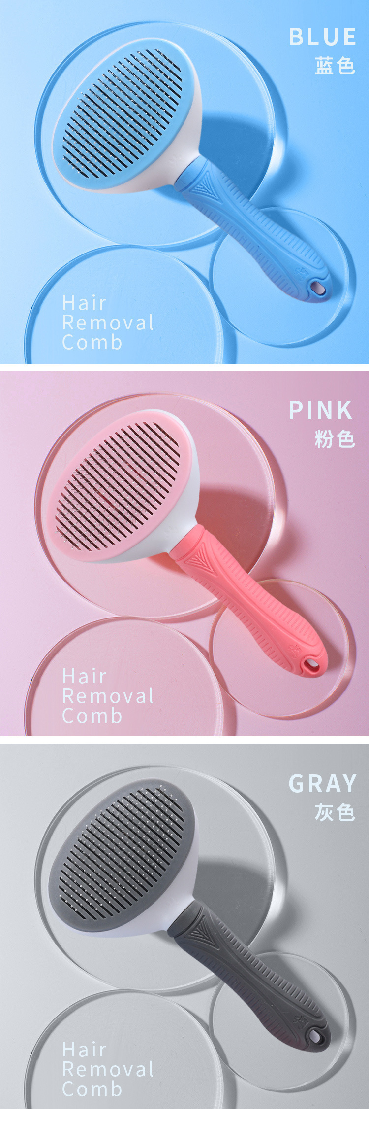 애완 동물 제품 개 머리 제거 바늘 빗 고양이 머리 제거 아름다움 자기 청소 빗 개 머리 제거 빗 애완 동물 빗스토어 가기