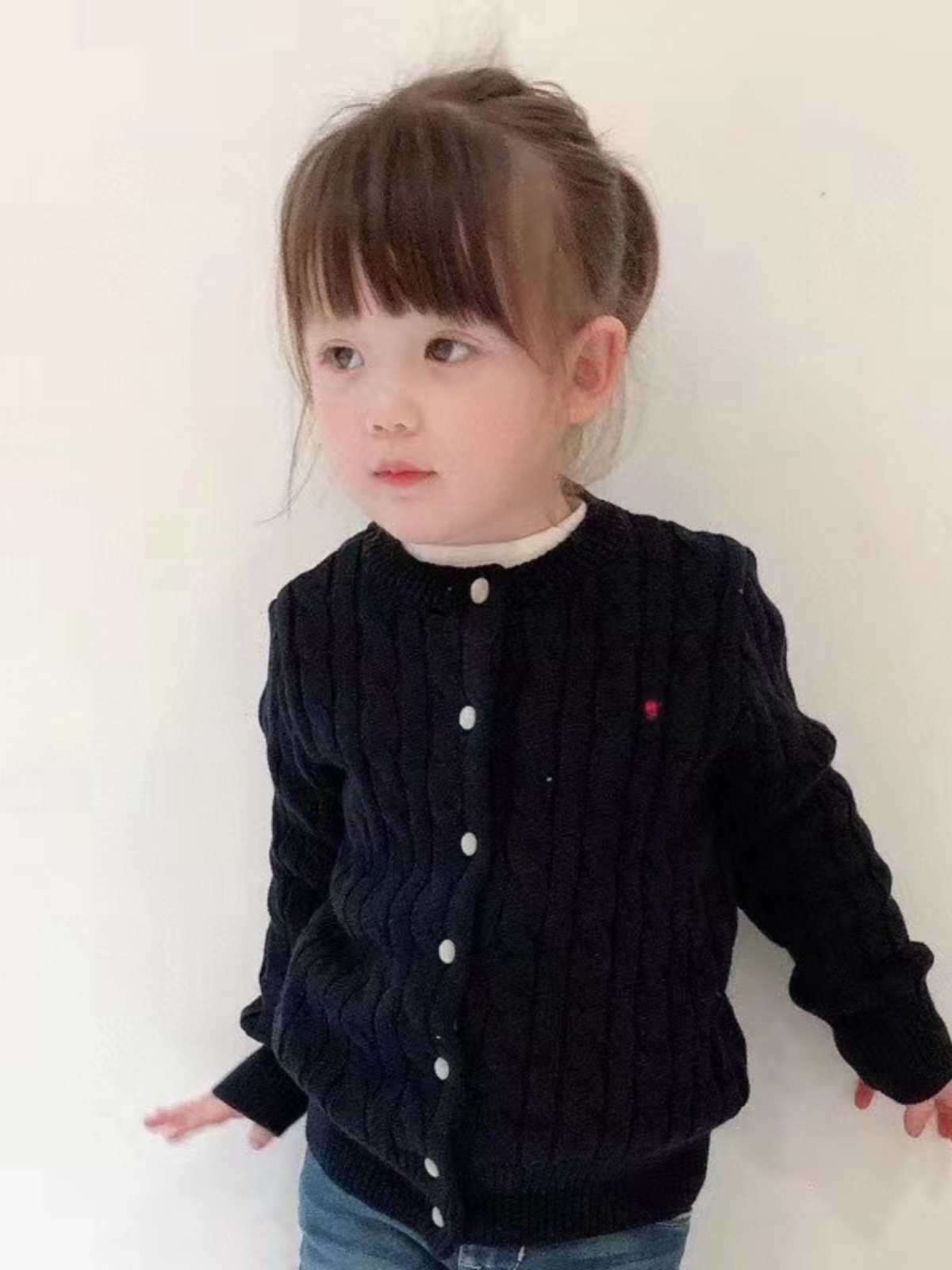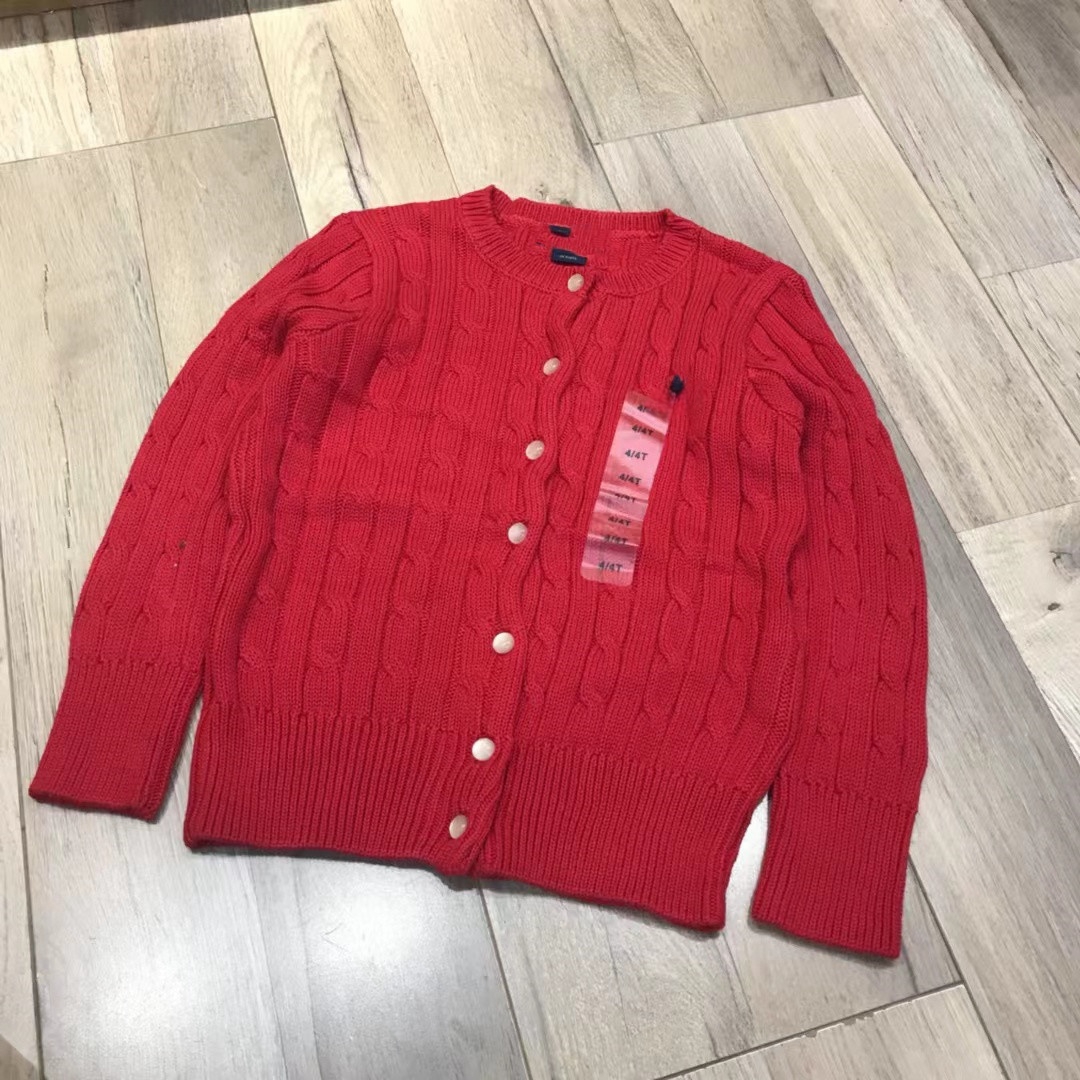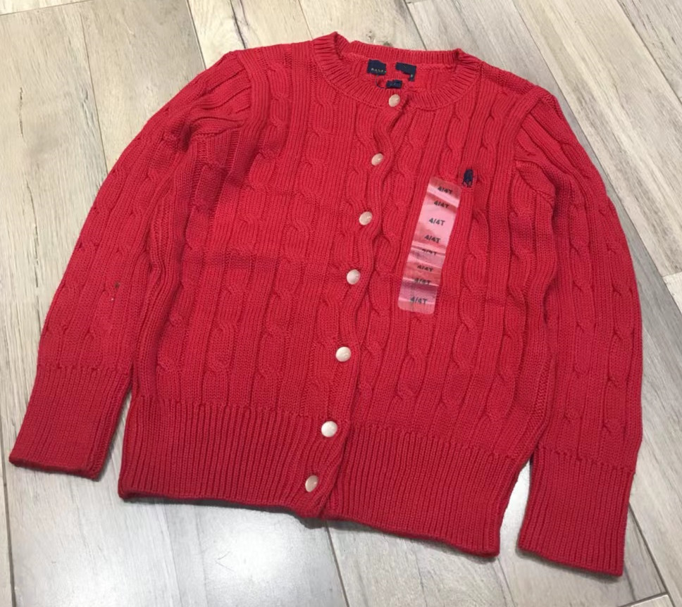 미국 부모-어린이 아동복 봄과 가을 R 새로운 소녀 클래식 포니 트위스트 니트 셔츠 큰 어린이 스웨터 카디건스토어 가기