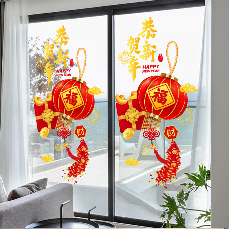 새해 창 스티커 2024 용 신년 방 레이아웃 원활한 창 꽃 발코니 슬라이딩 도어 대형 푸 캐릭터 스티커스토어 가기
