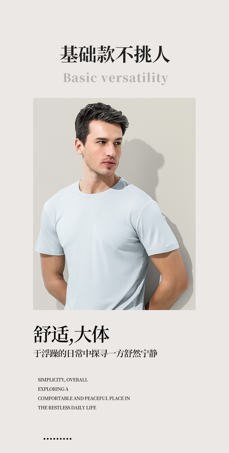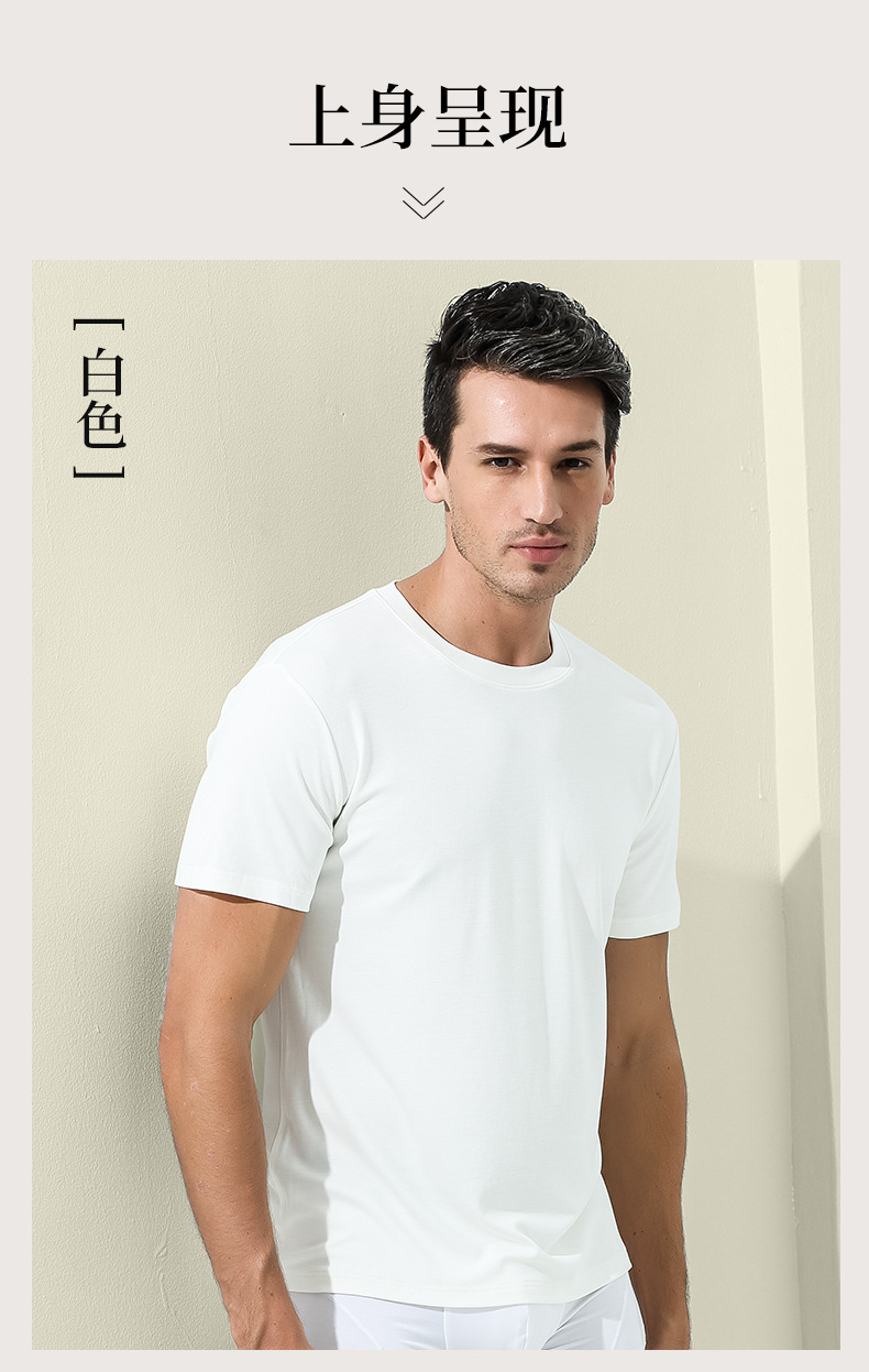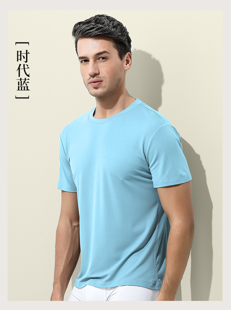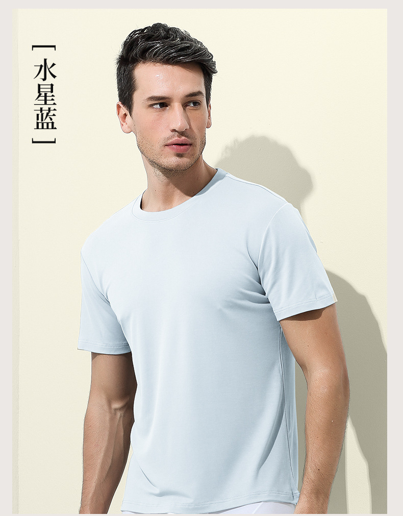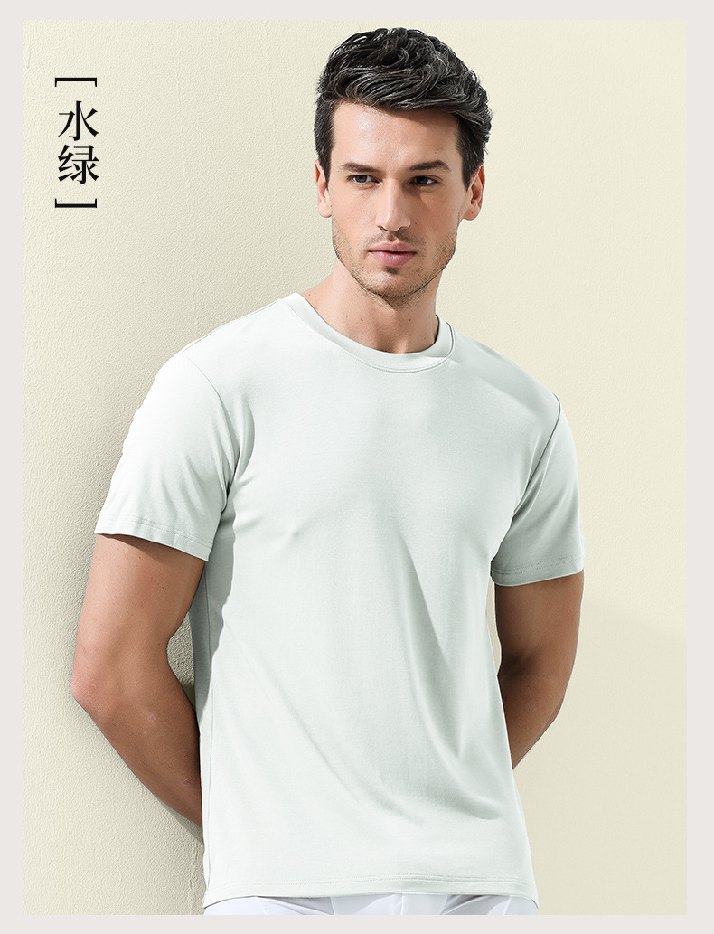 60수 양면 모달 남성용 라운드넥 솔리드 컬러 캐주얼 탑, 출퇴근용 베이스 레이어, 반팔 크로스보더스토어 가기