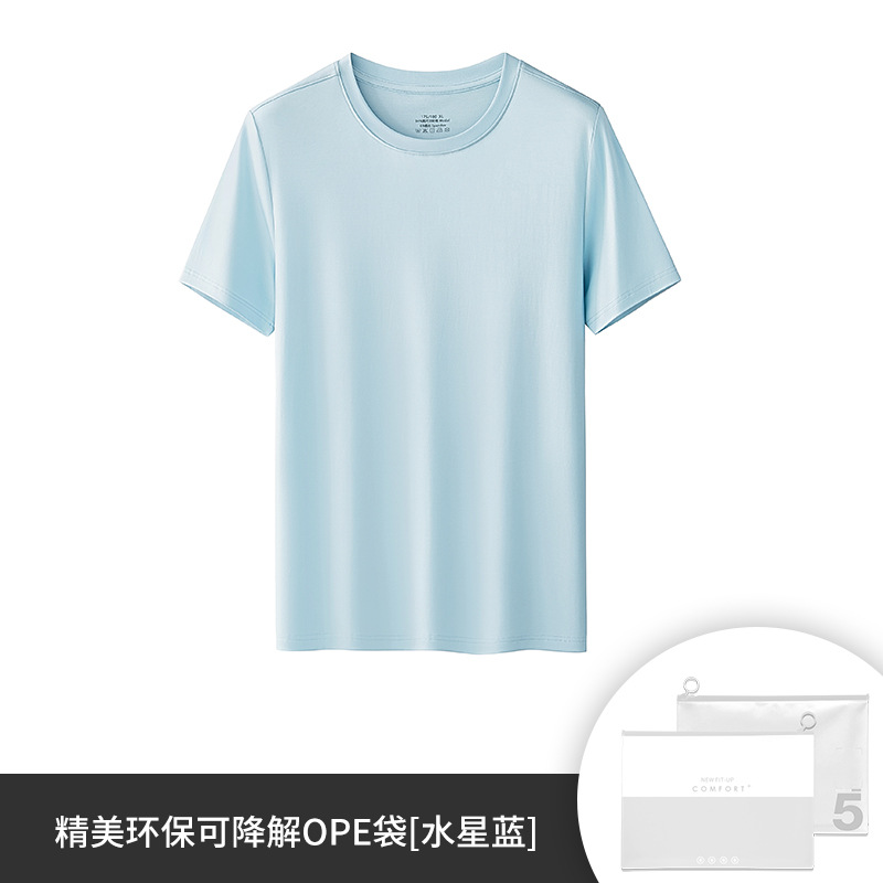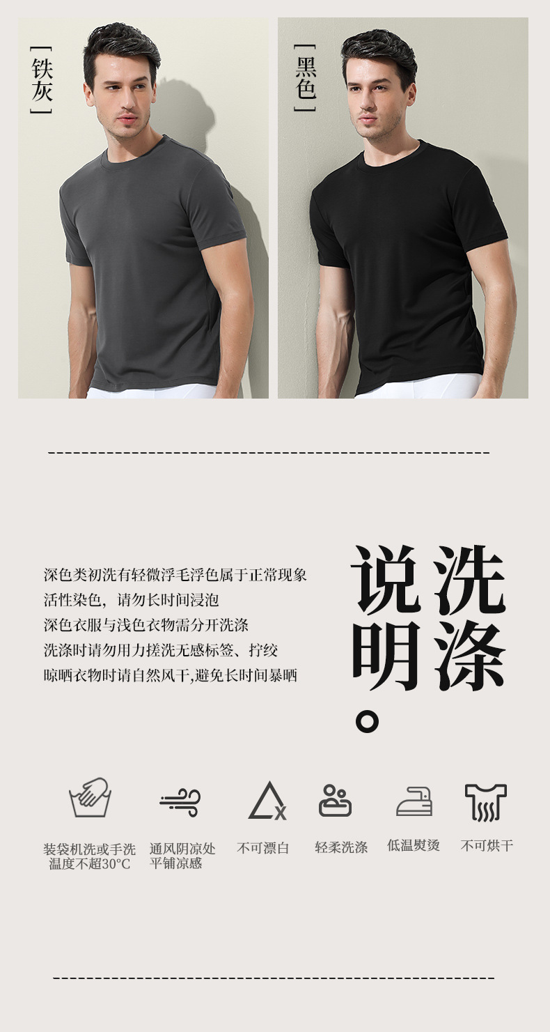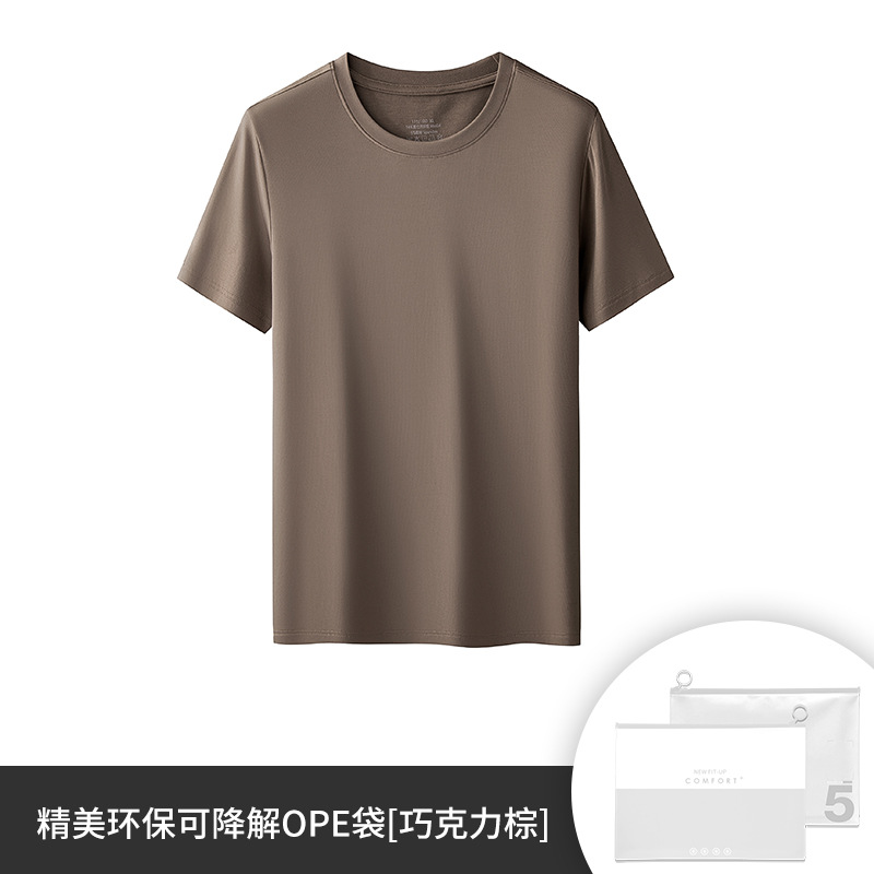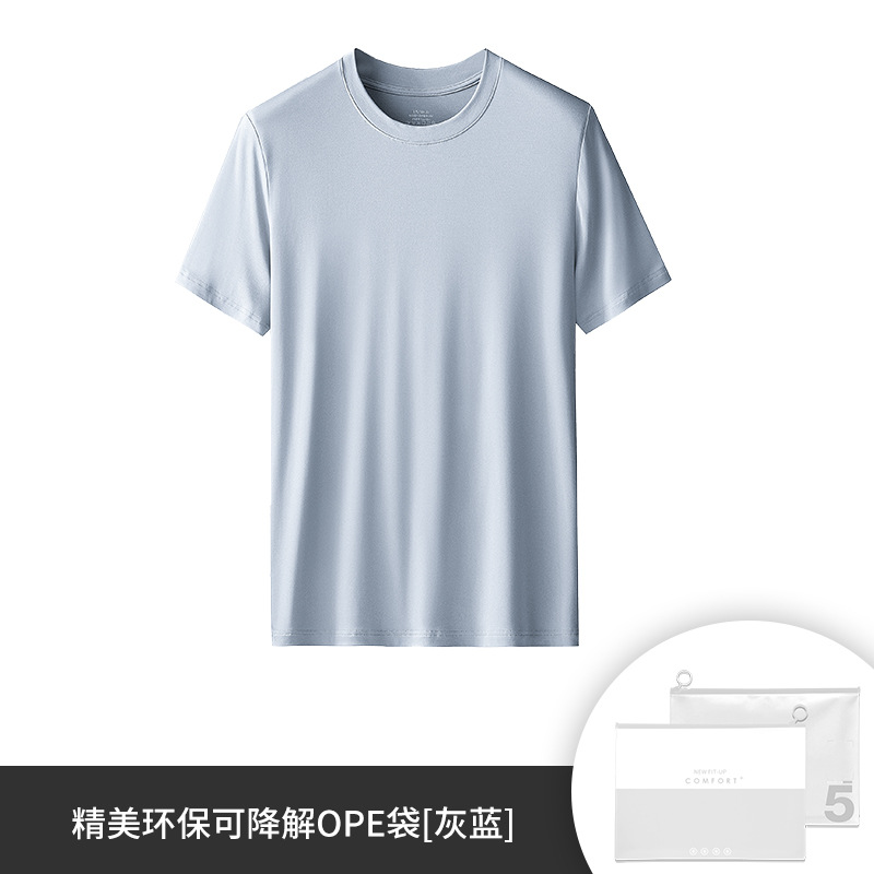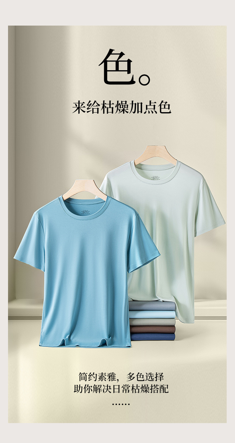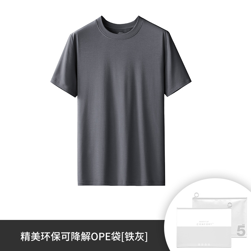 60수 양면 모달 남성용 라운드넥 솔리드 컬러 캐주얼 탑, 출퇴근용 베이스 레이어, 반팔 크로스보더스토어 가기