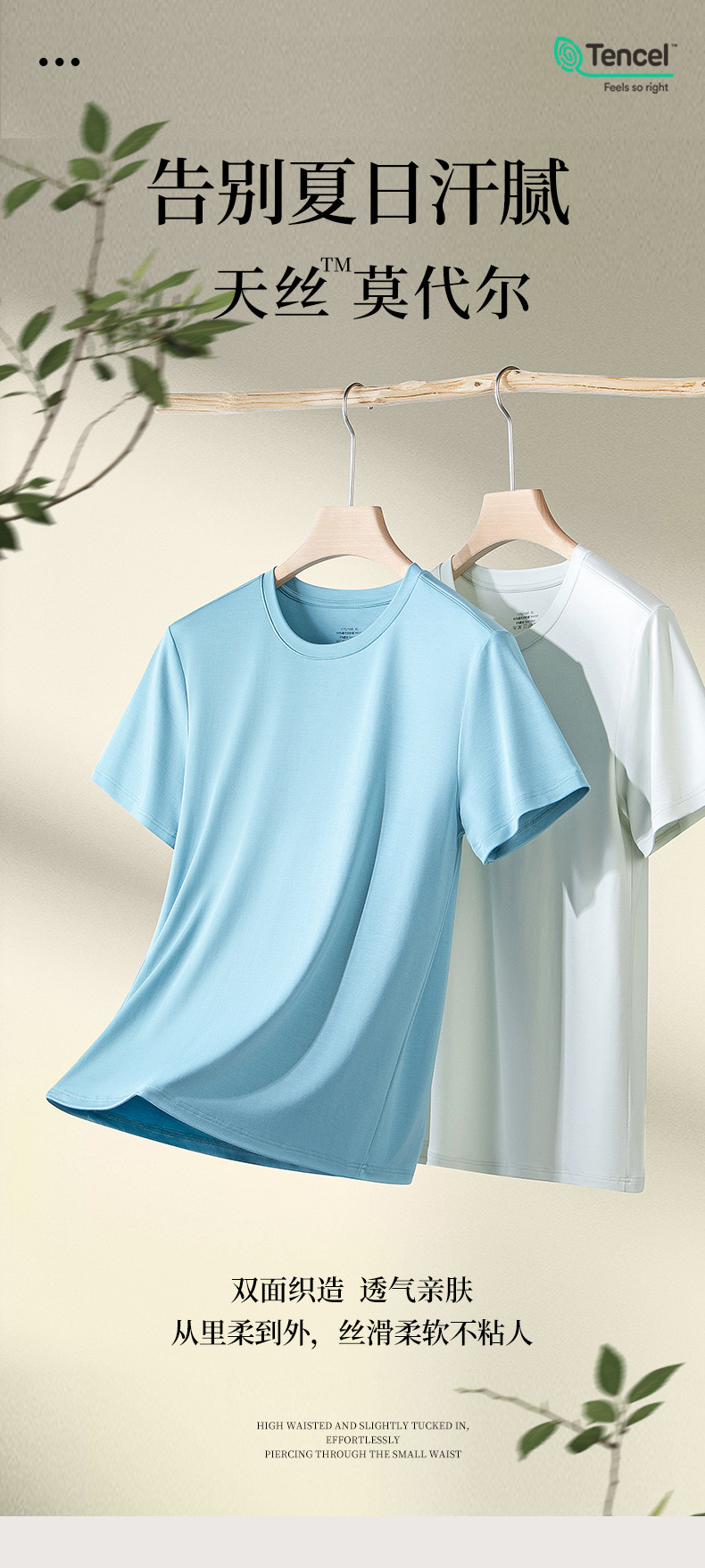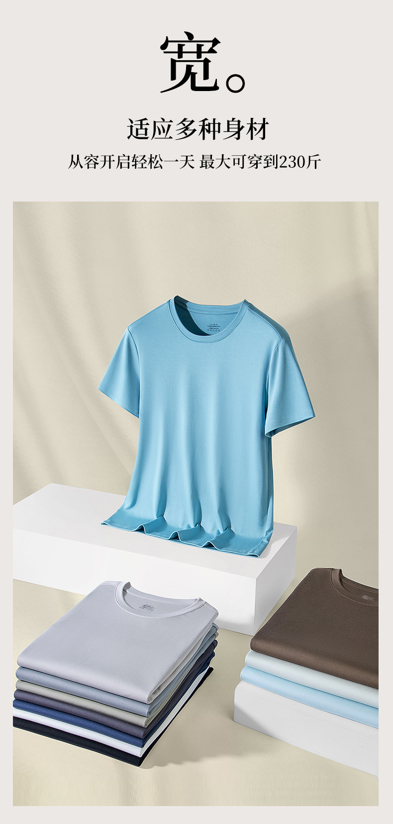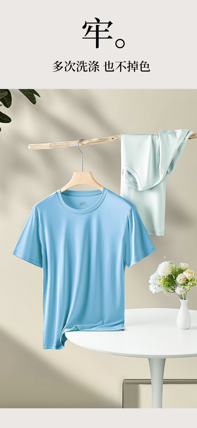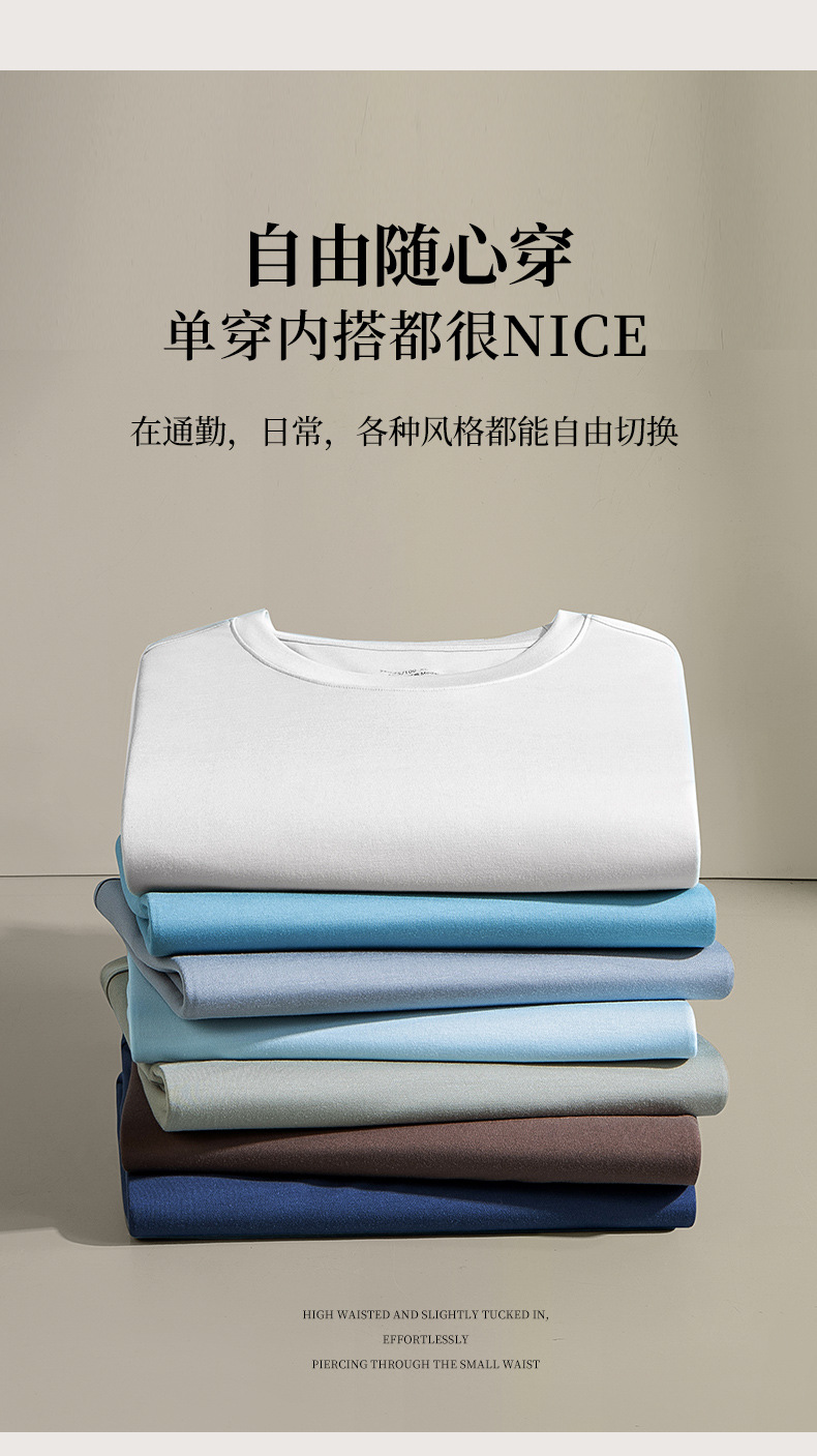 60수 양면 모달 남성용 라운드넥 솔리드 컬러 캐주얼 탑, 출퇴근용 베이스 레이어, 반팔 크로스보더스토어 가기