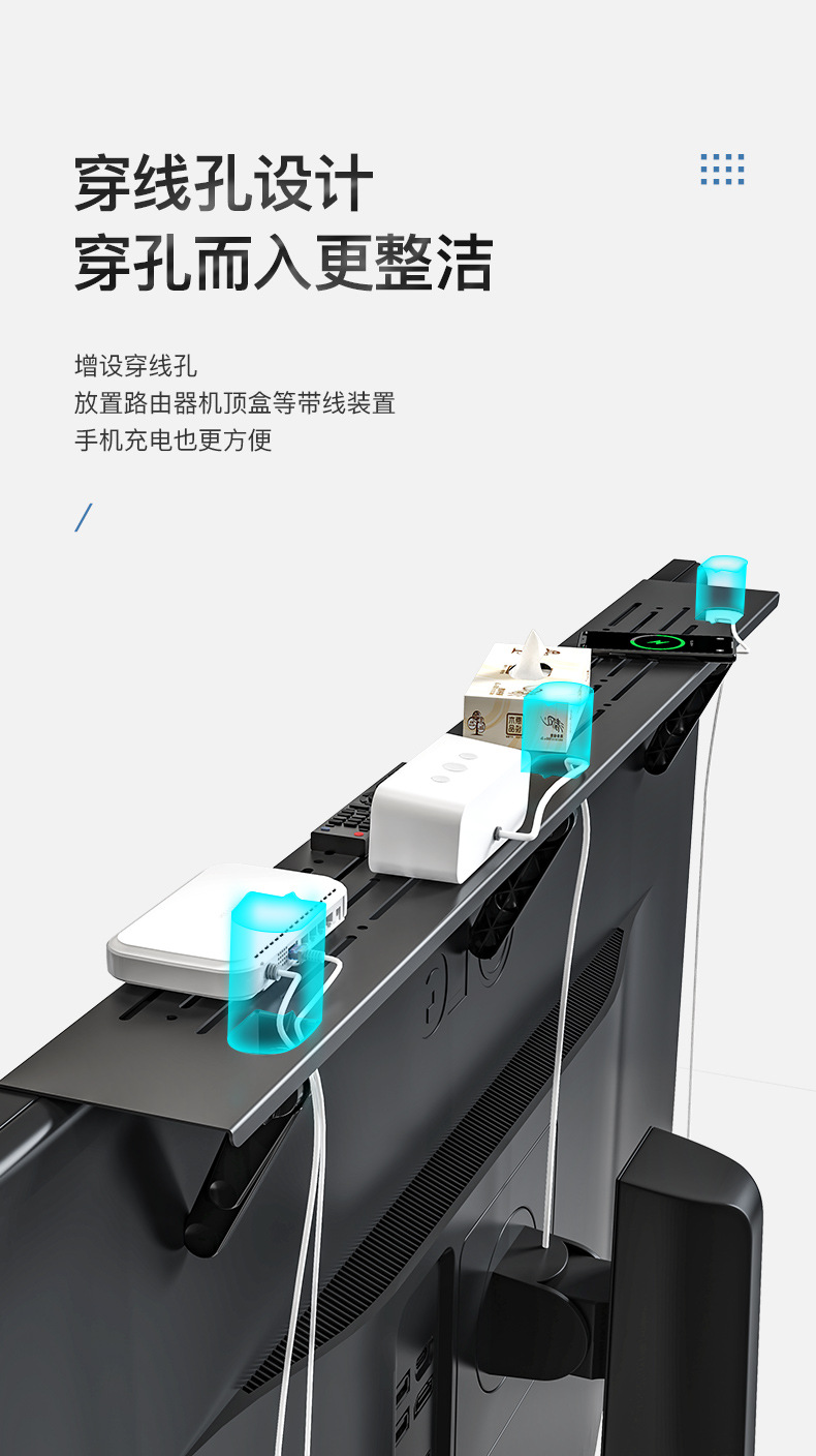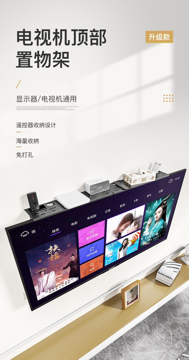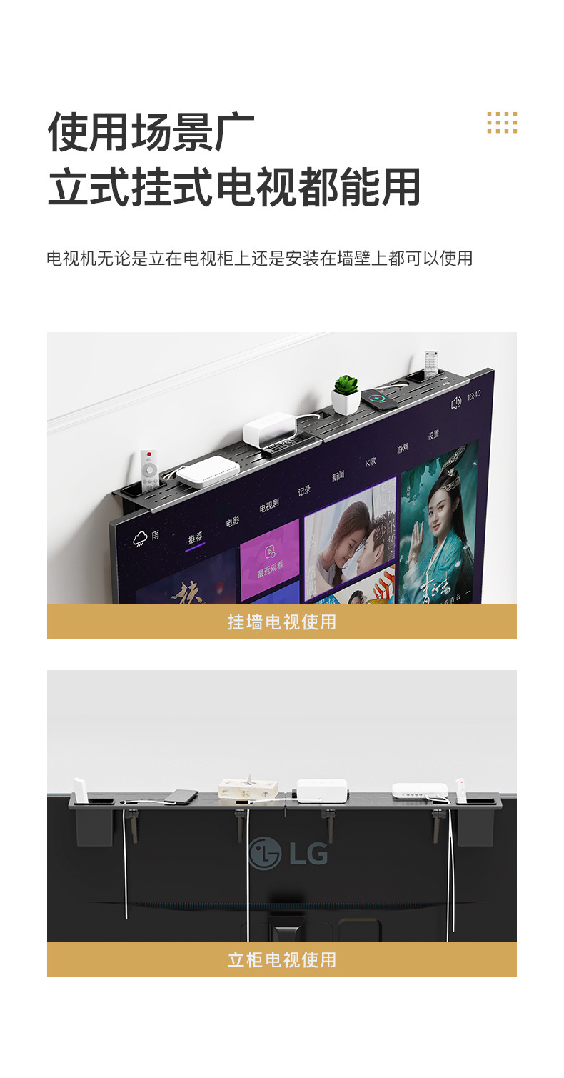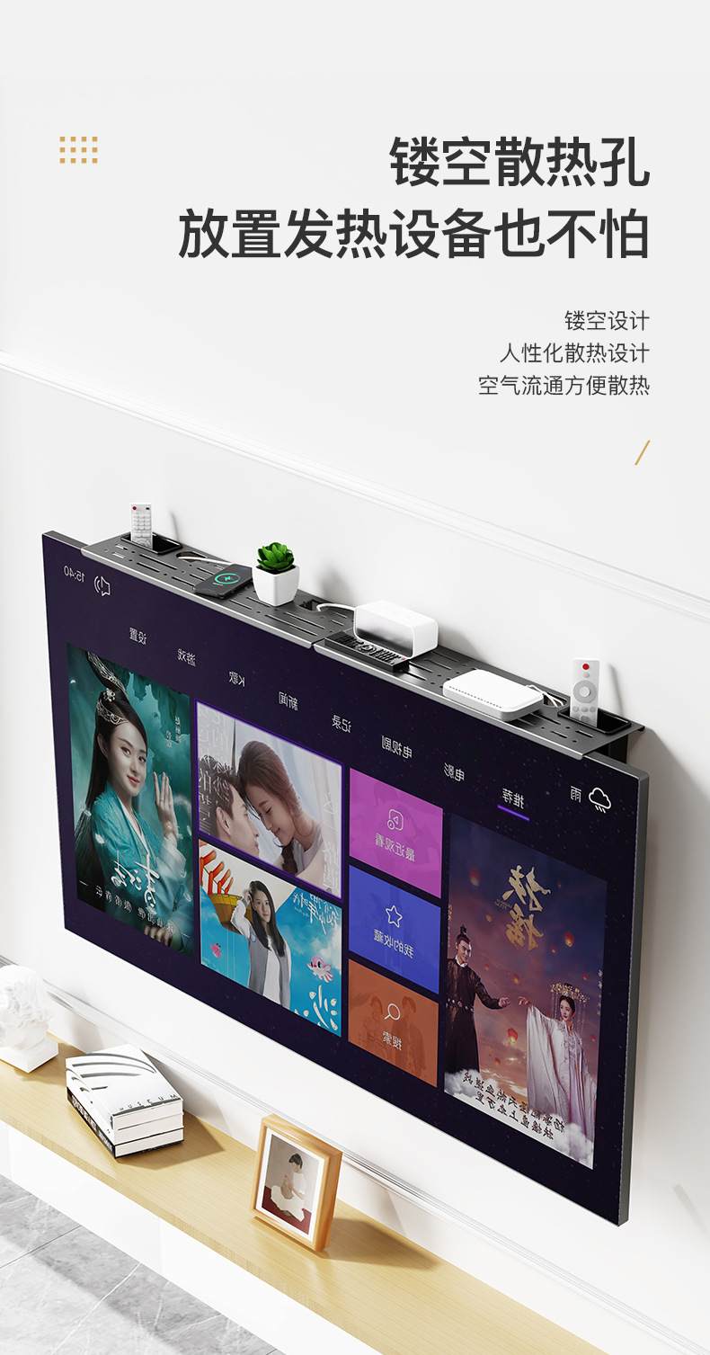 셋톱박스 보관함, 라우터, TV 상단에 브래킷 보관 브래킷, 상단에 구멍이 없는 브래킷