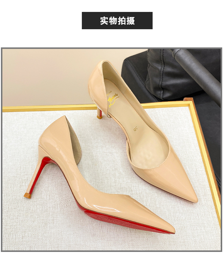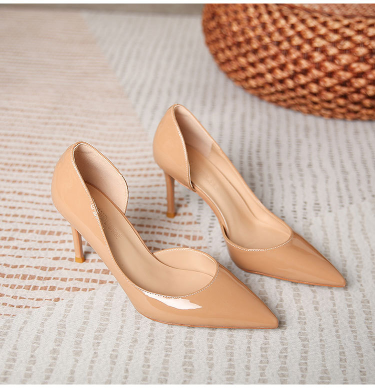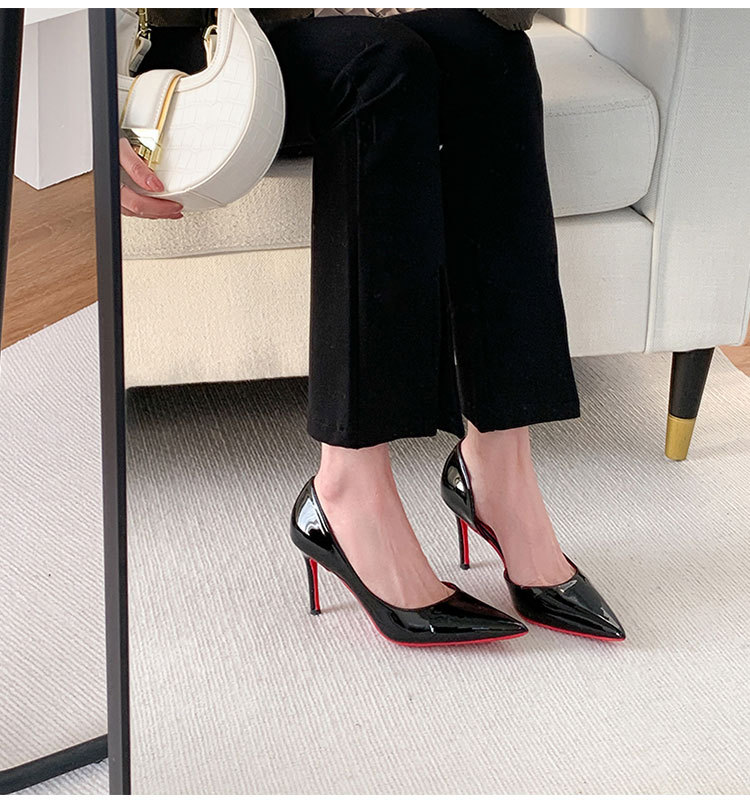 재고 있음 C111 블랙 2025 섹시하고 피곤하지 않은 패션 사이드 빈 하이힐 포인티드 토 스틸레토 프렌치 라지 사이즈 슈즈스토어 가기