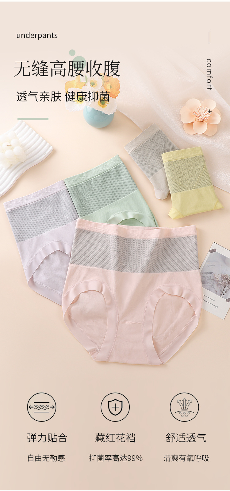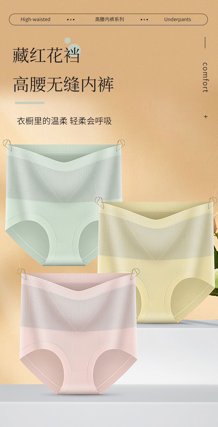 새로운 사프란 하이 허리 배꼽 바지 속옷 여성 브리프 통기성 노출 방지 엉덩이 리프팅 항균 플러스 사이즈스토어 가기