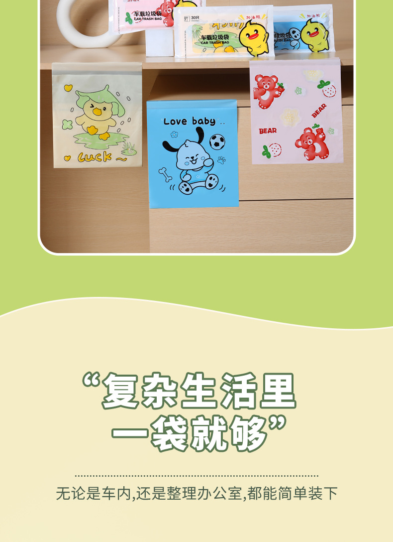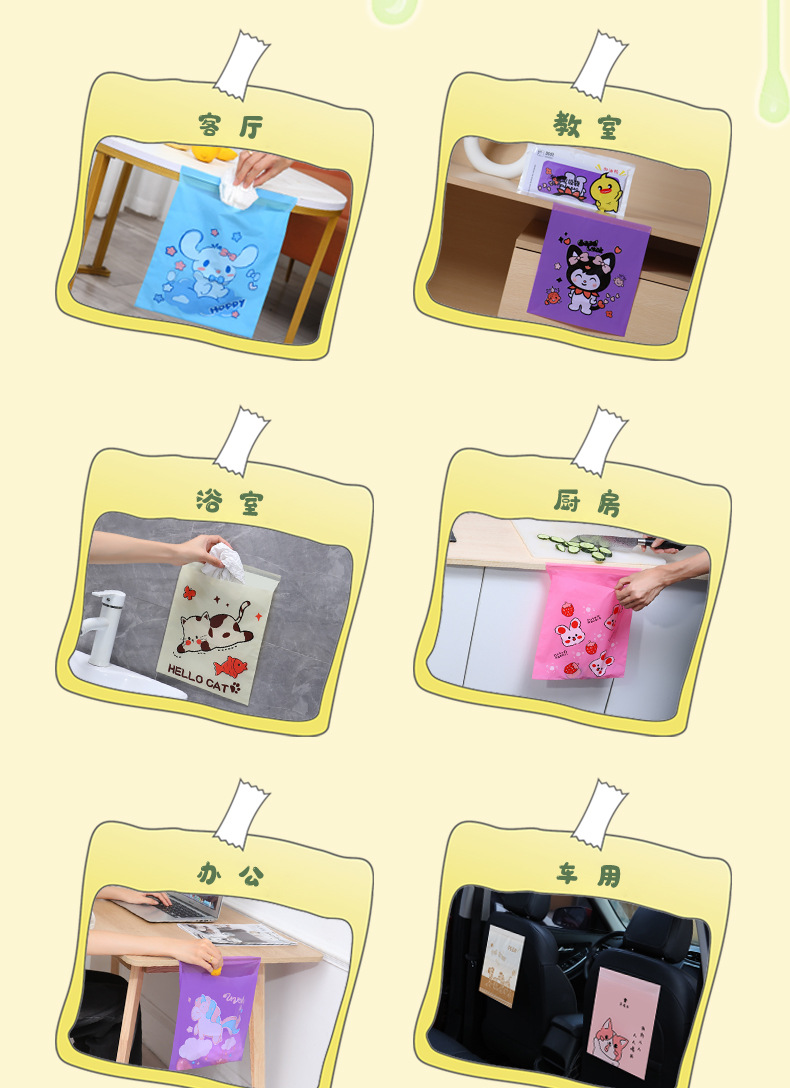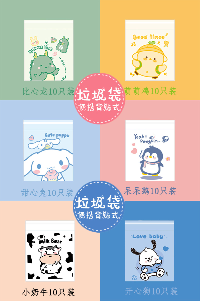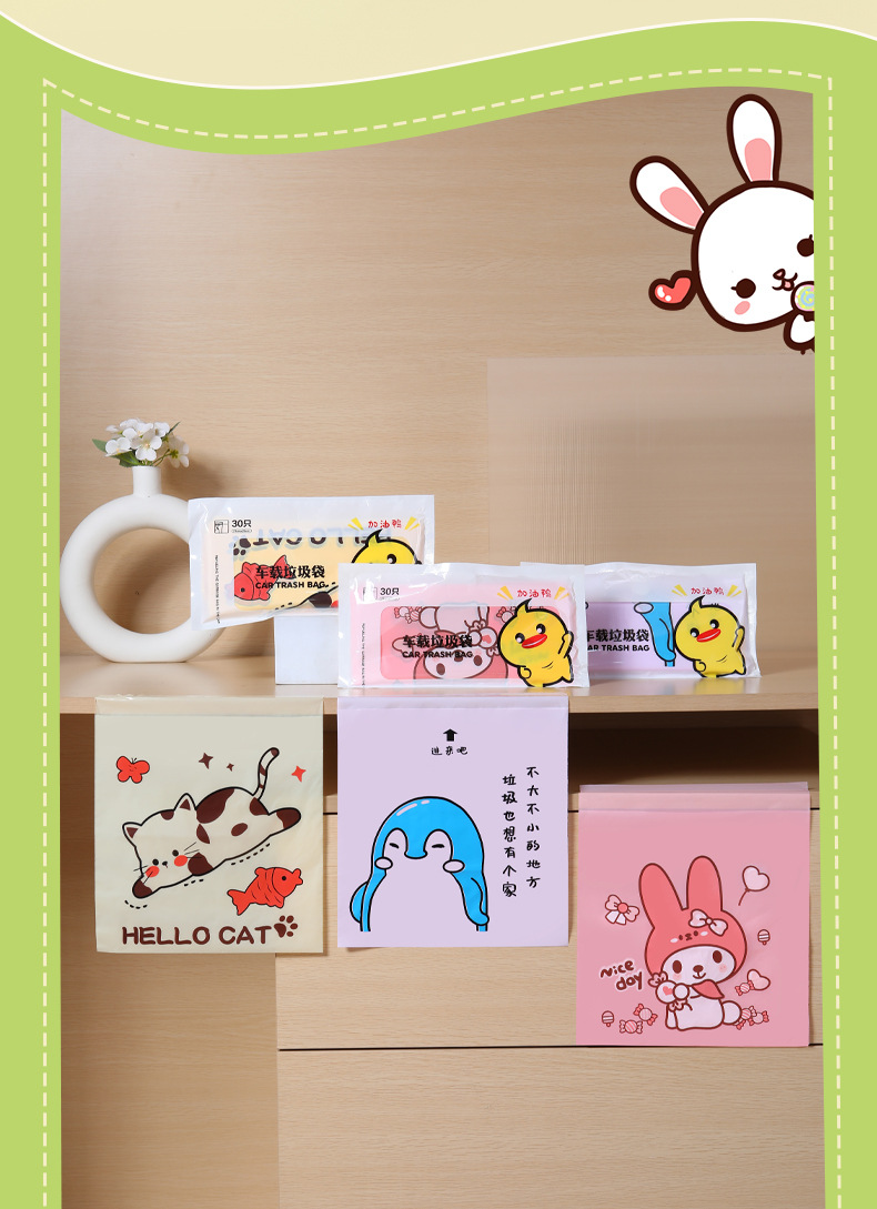 만화 자동차 청소 가방 접착 데스크탑 쓰레기 가방 두꺼운 자체 접착 일회용 바프 가방 스팟 도매스토어 가기