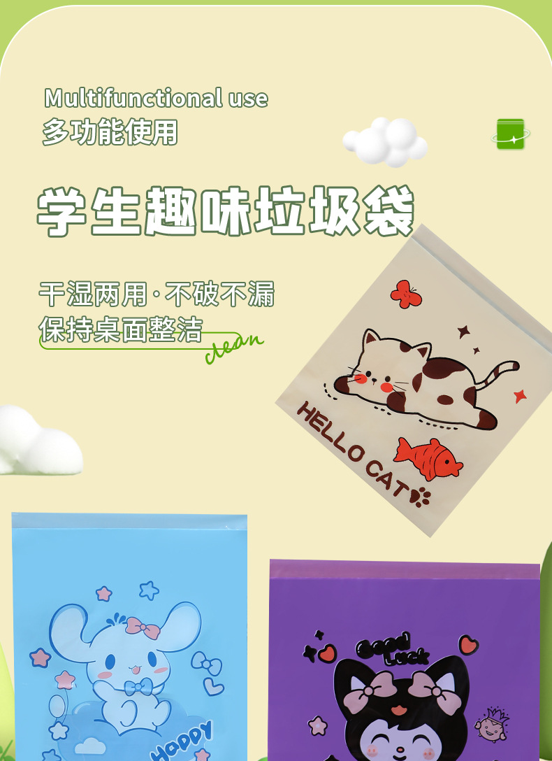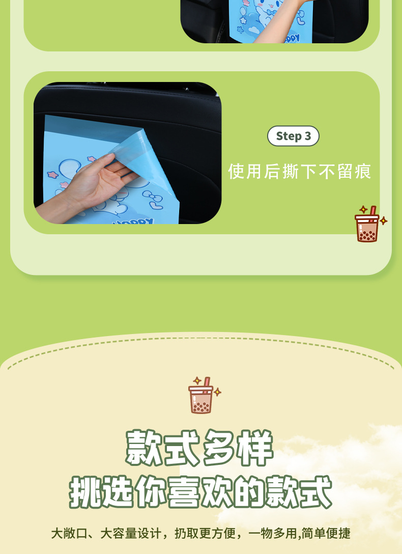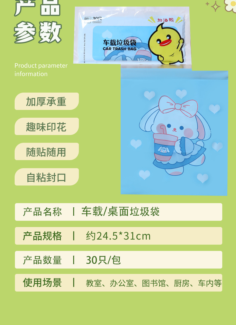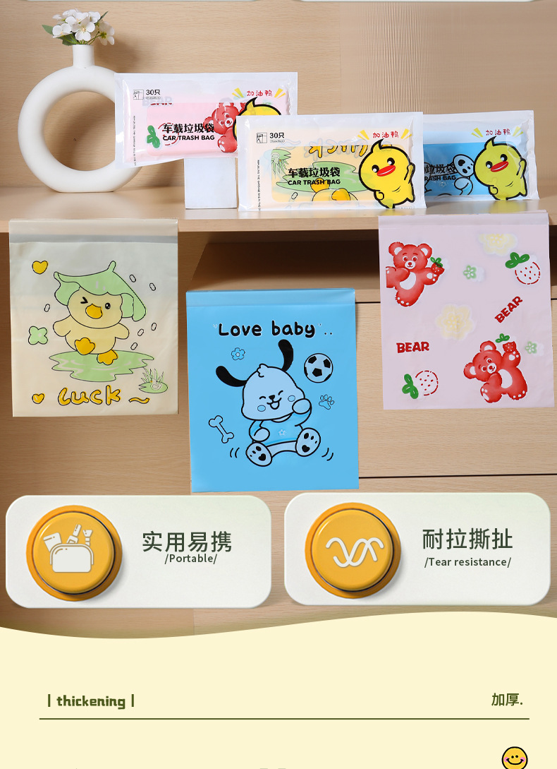 만화 자동차 청소 가방 접착 데스크탑 쓰레기 가방 두꺼운 자체 접착 일회용 바프 가방 스팟 도매스토어 가기