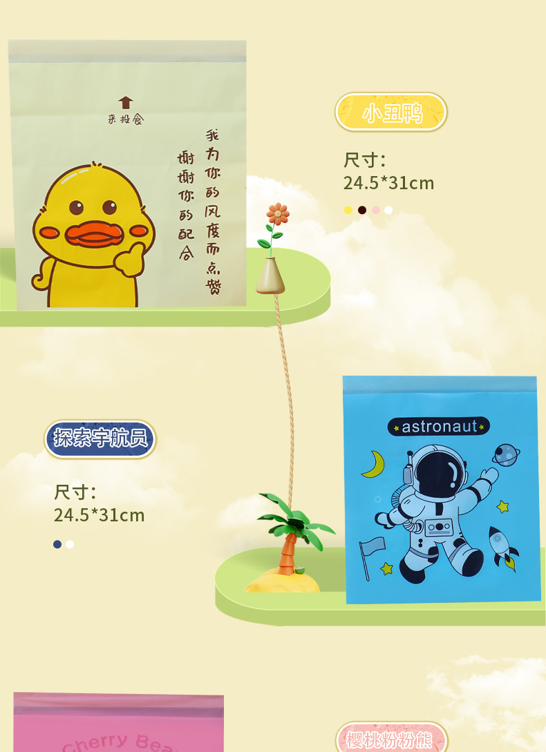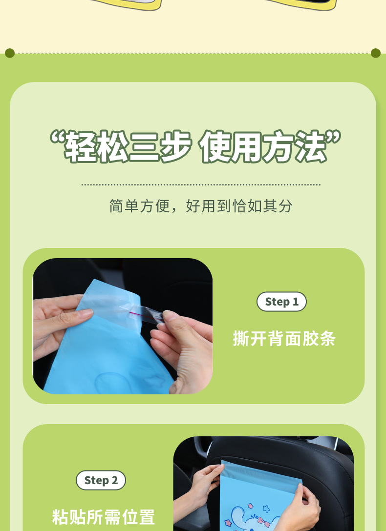 만화 자동차 청소 가방 접착 데스크탑 쓰레기 가방 두꺼운 자체 접착 일회용 바프 가방 스팟 도매