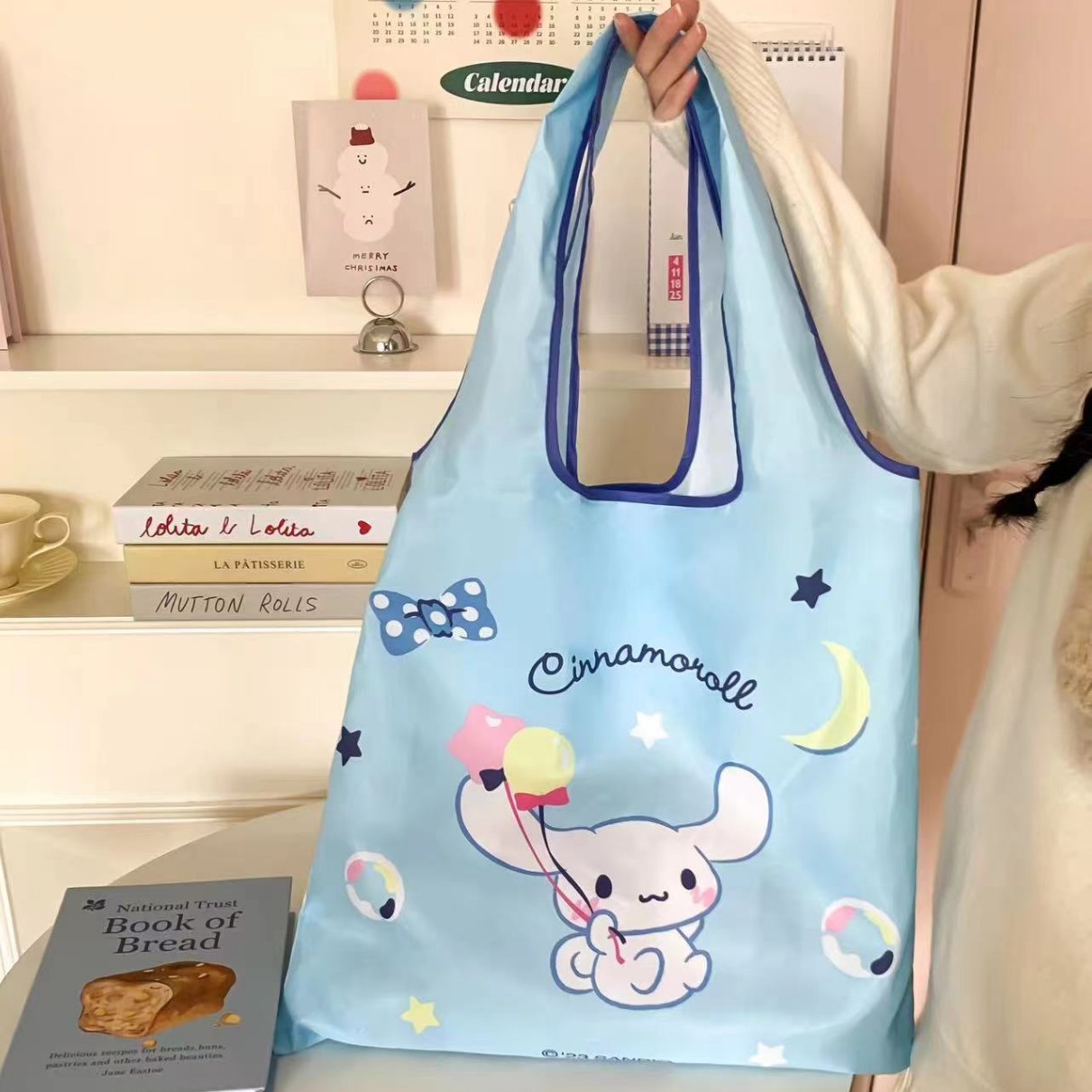 진품 새로운 Sanrio Kulomi 접히는 녹색 쇼핑백 대형 휴대용 대용량 휴대용 저장 가방스토어 가기