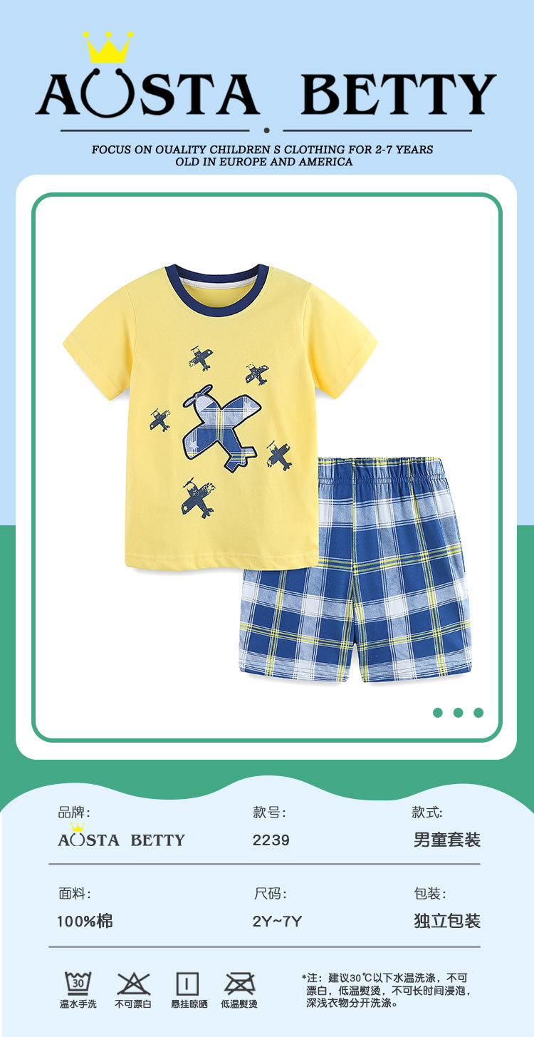 여름 소년 티셔츠 반바지 투피스 양복 어린이 면화 스포츠 정장 유럽과 미국 스타일의 만화 프린트 티셔츠 세트스토어 가기