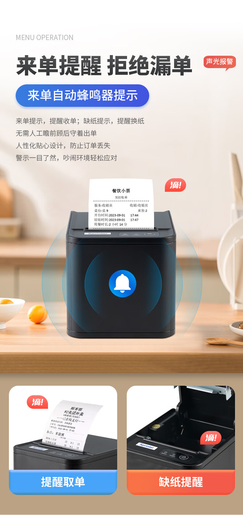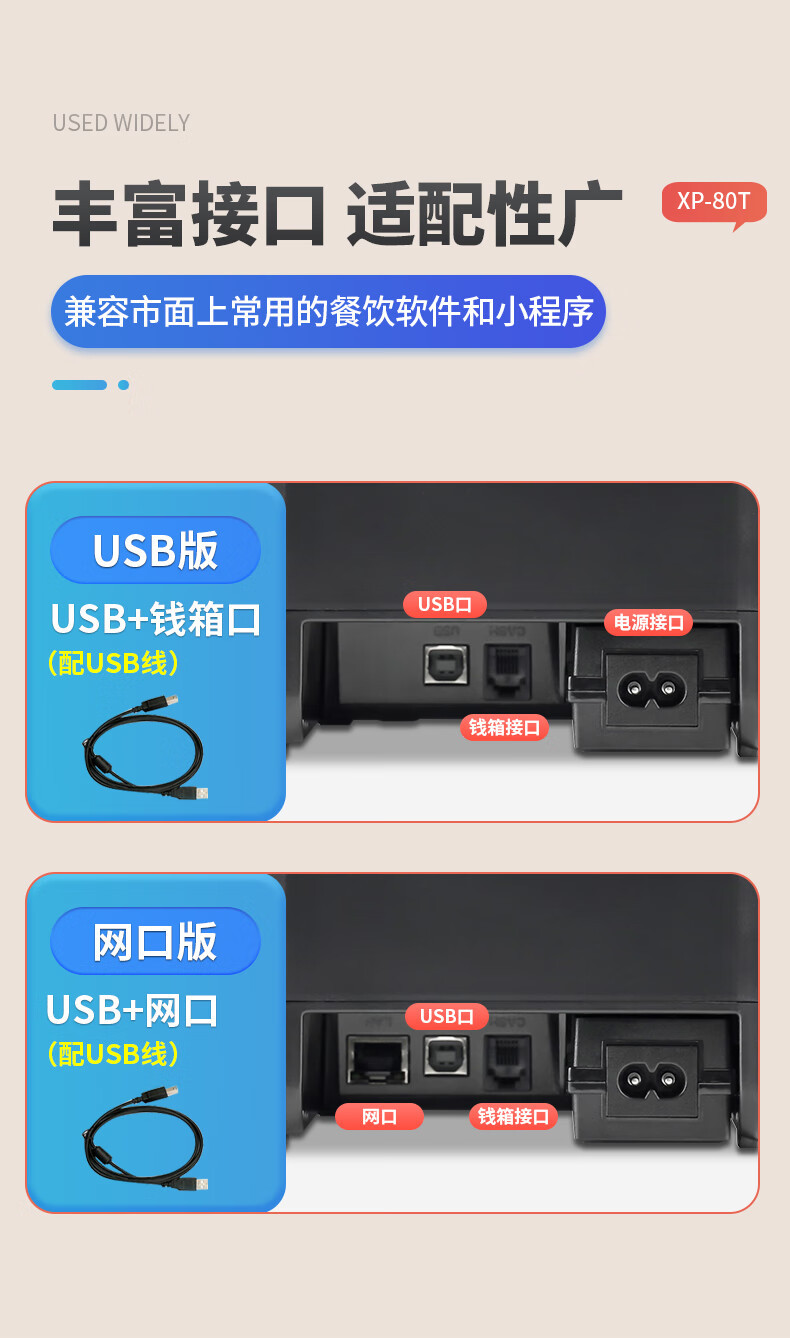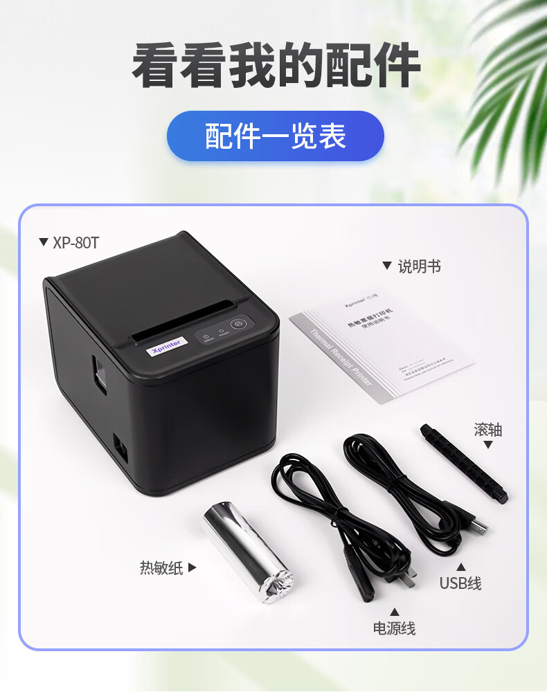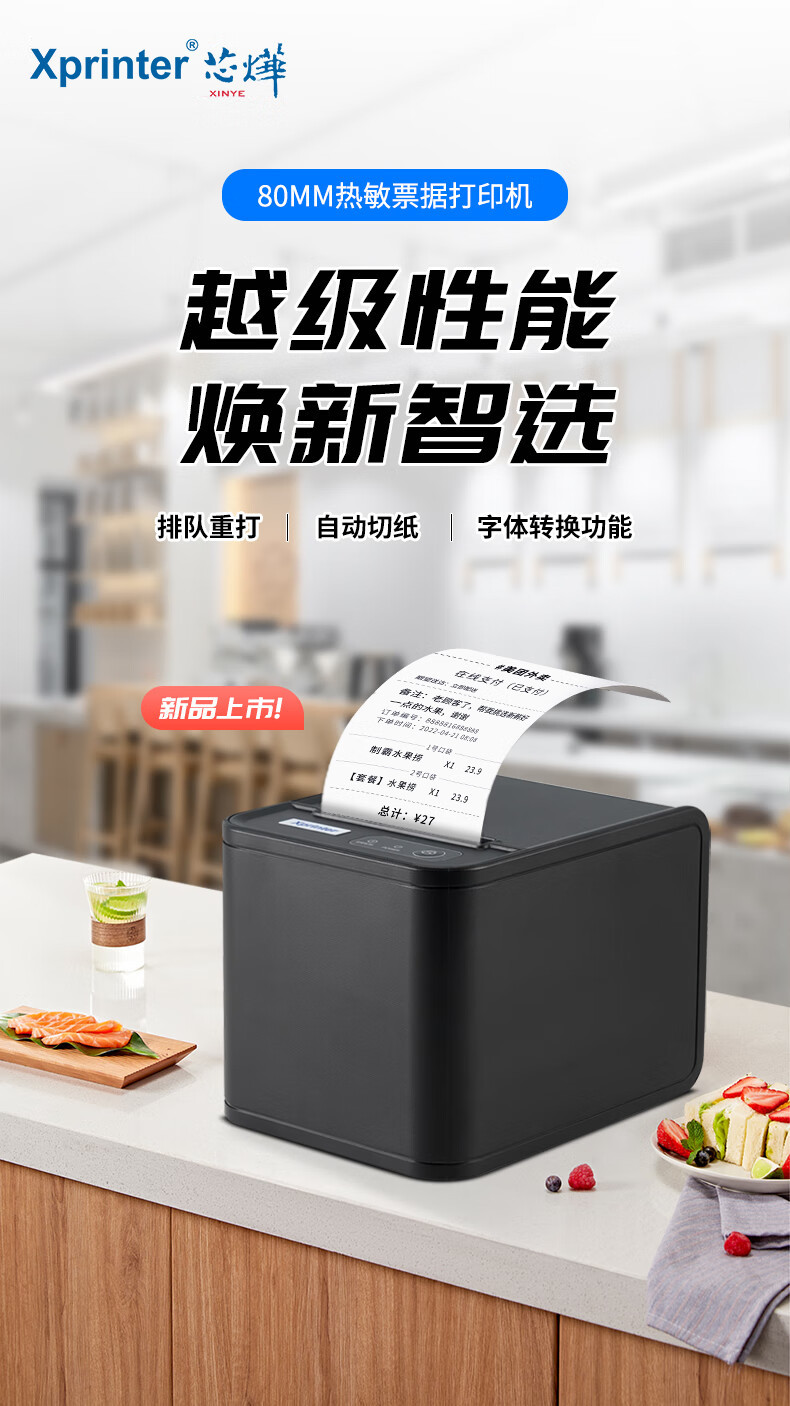 Xprinterr XP-80T 열전사 프린터 프론트 데스크 영수증 계산대 주방 영수증 바코드스토어 가기