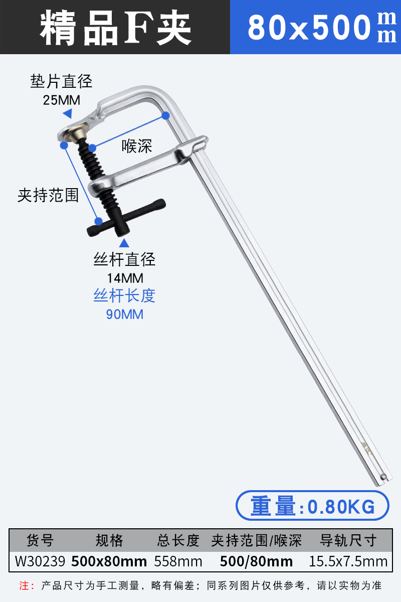 • [산업용] 프리미엄 F클램프 500x80mm 가이드레일(15.5x7.5)