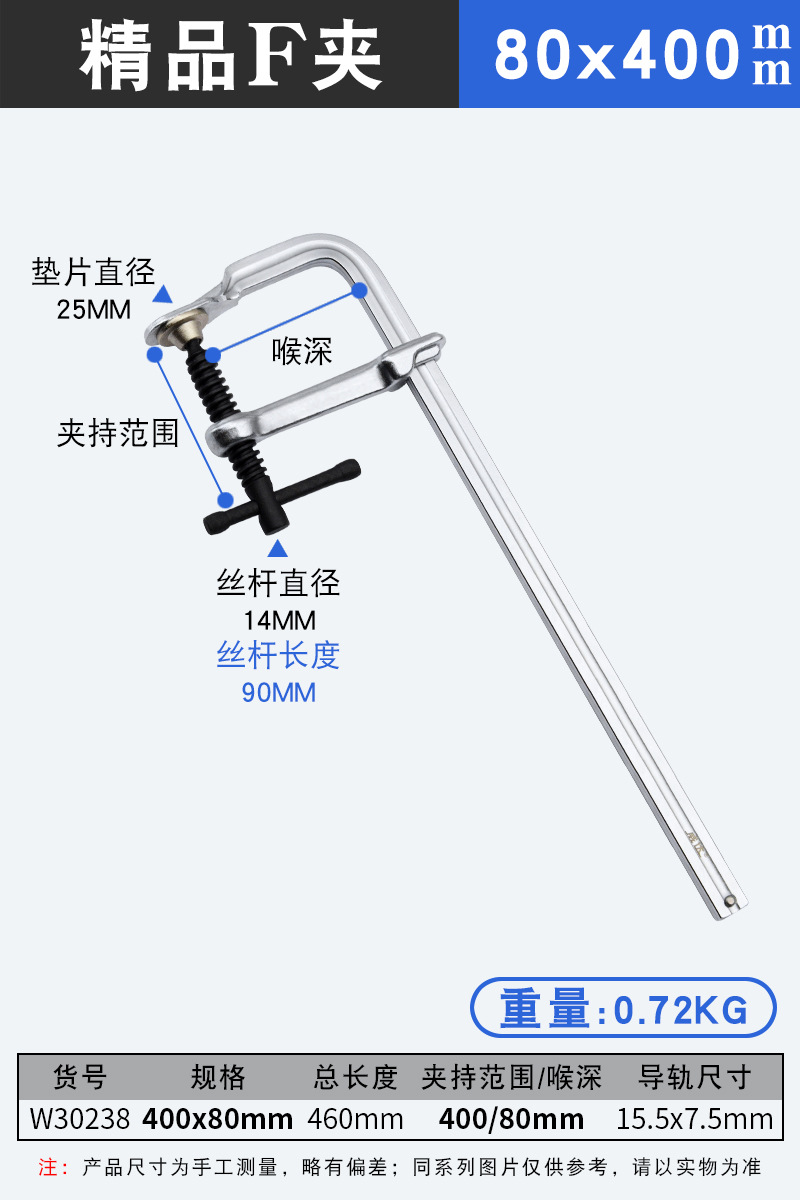 • [공업용] 프리미엄 F클램프 400x80mm 가이드레일(15.5x7.5)