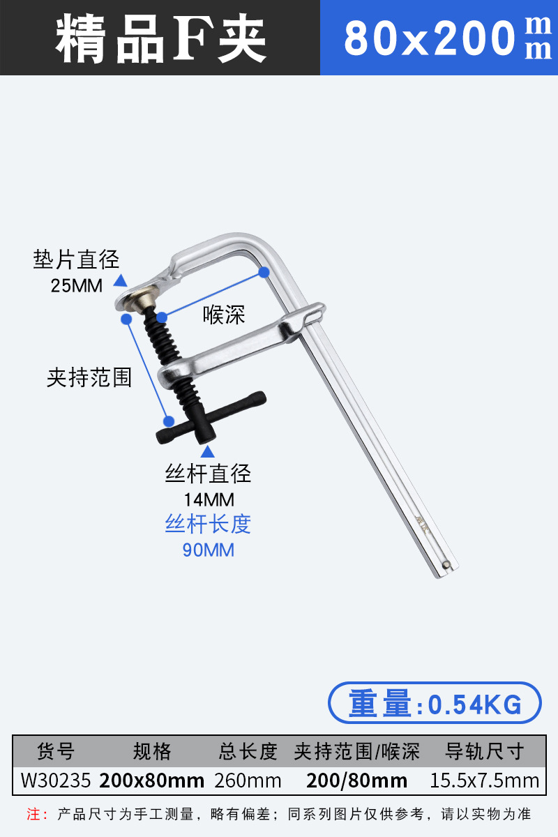 • [공업용] 프리미엄 F클램프 200x80mm 가이드레일(15.5x7.5)