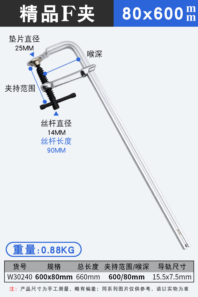 • [공업용] 프리미엄 F클램프 600x80mm 가이드레일(15.5x7.5)