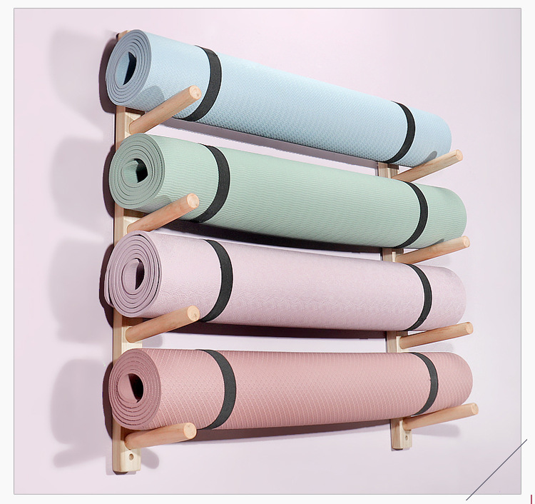 단단한 나무 요가 매트 스토리지 랙 벽 거품 마사지 롤러 벽 교수형 스토리지 랙 요가 스튜디오 필라테스 조직 랙