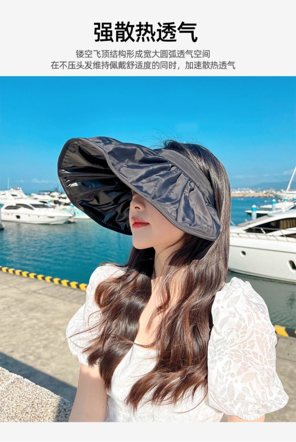 비닐 쉘 모자, 여름 자외선 차단 모자, 챙이 큰 빈탑 모자, 이중 용도 쉘 모자, 롤러 헤어밴드, 한국 스타일 여성용 통기성 모자