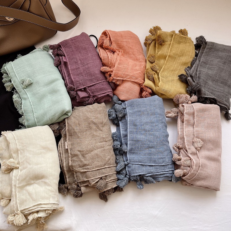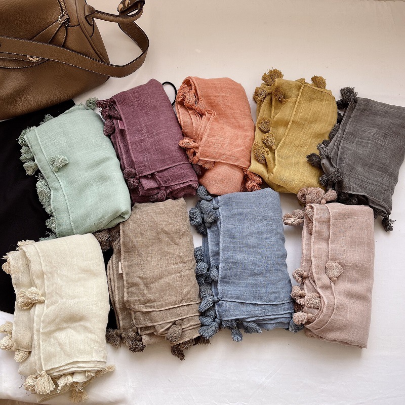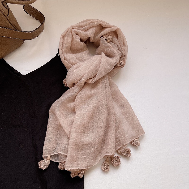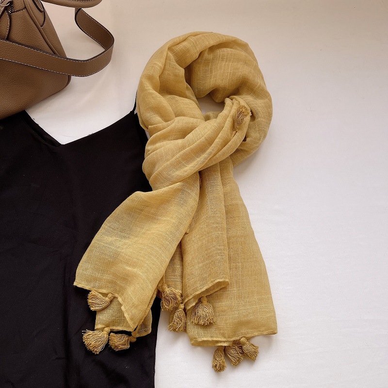 원래 예술적 대외 무역 순수 린넨면 및 린넨 스카프 실크 스카프 봄과 여름 카키 베이지 색 얇은 차양 목도리 가을과 겨울스토어 가기