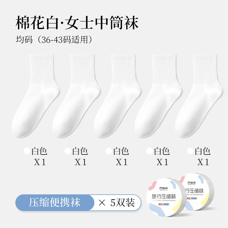 • 숙녀 [압축 튜브 양말 면 화이트] 5 쌍