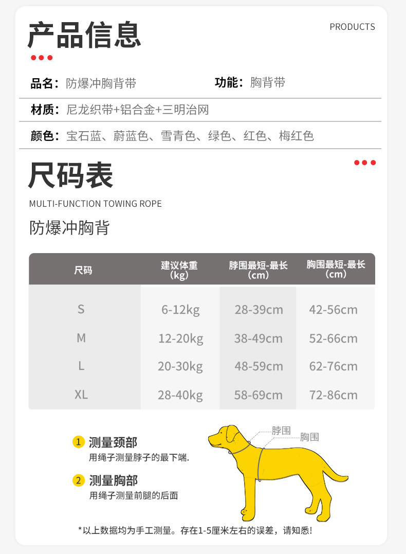 야외용 안전줄, 방폭, 반사, 달리기, 산책, 강아지 목줄, 금모리견용, 애완동물 하네스, 도매, 해외 인기 상품스토어 가기