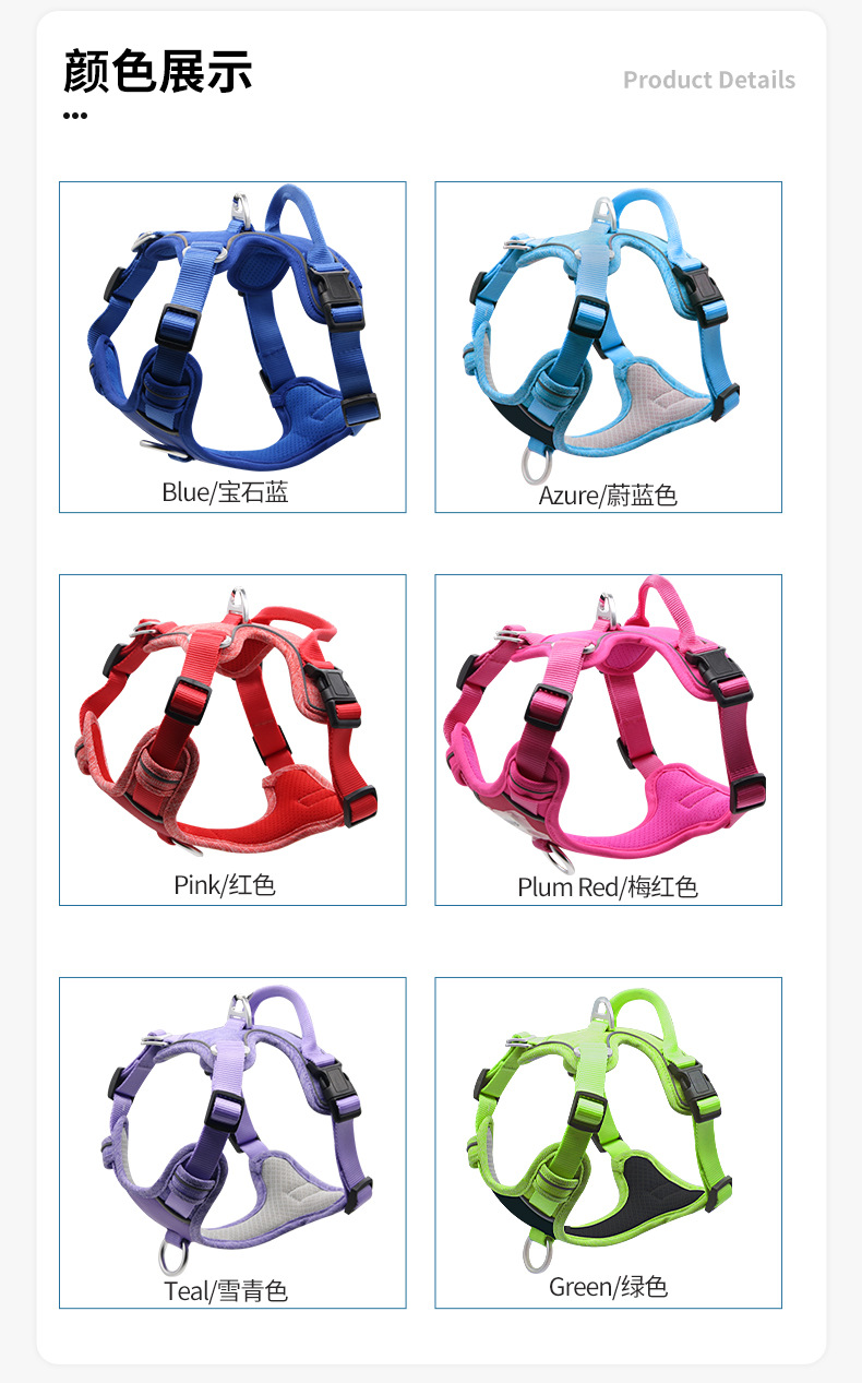 야외용 안전줄, 방폭, 반사, 달리기, 산책, 강아지 목줄, 금모리견용, 애완동물 하네스, 도매, 해외 인기 상품