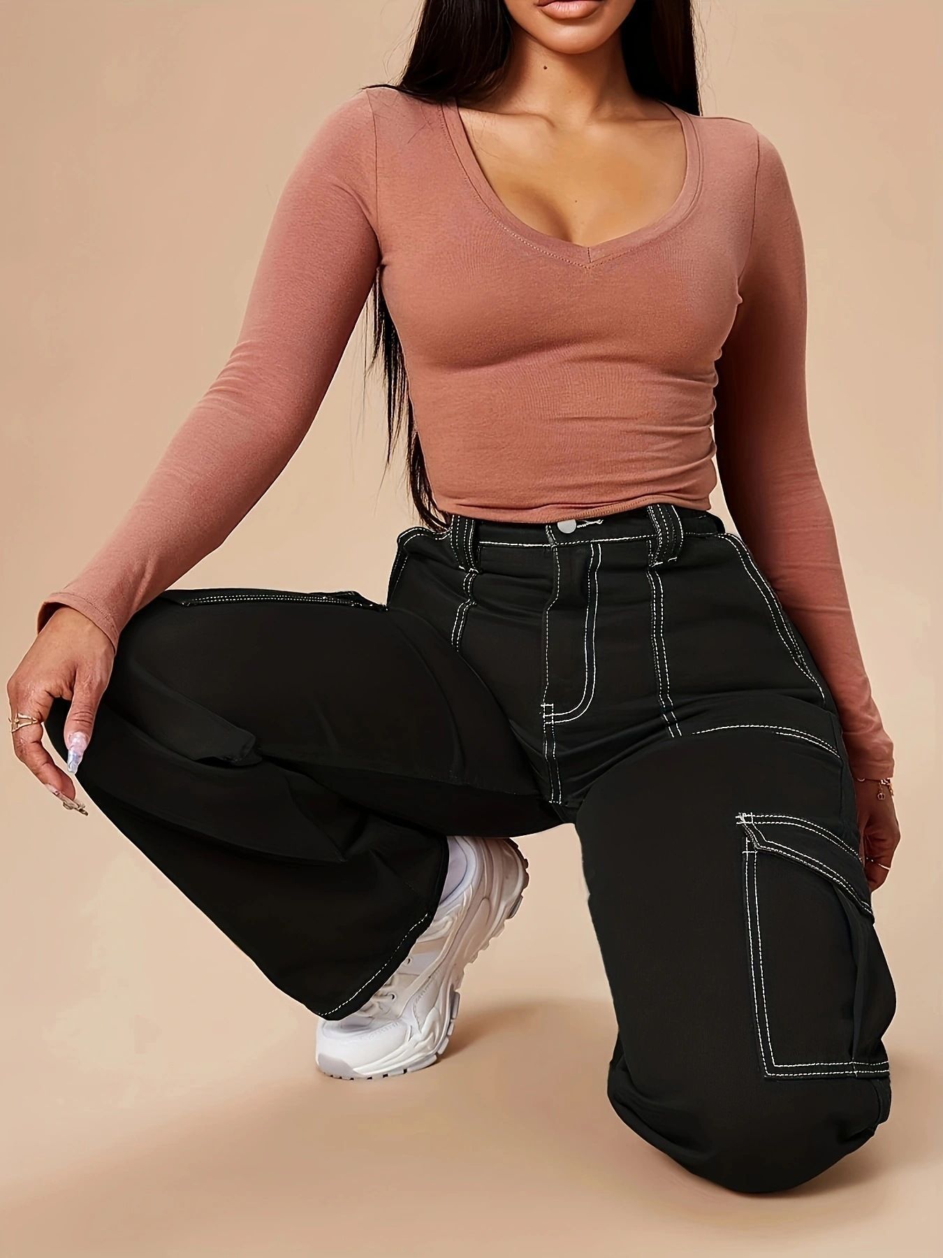 유럽과 미국의 AliExpress 국경 간 패션 맞춤형 거리 느슨한 와이드 레그 작업복 멀티 백 여성 청바지를 기원합니다