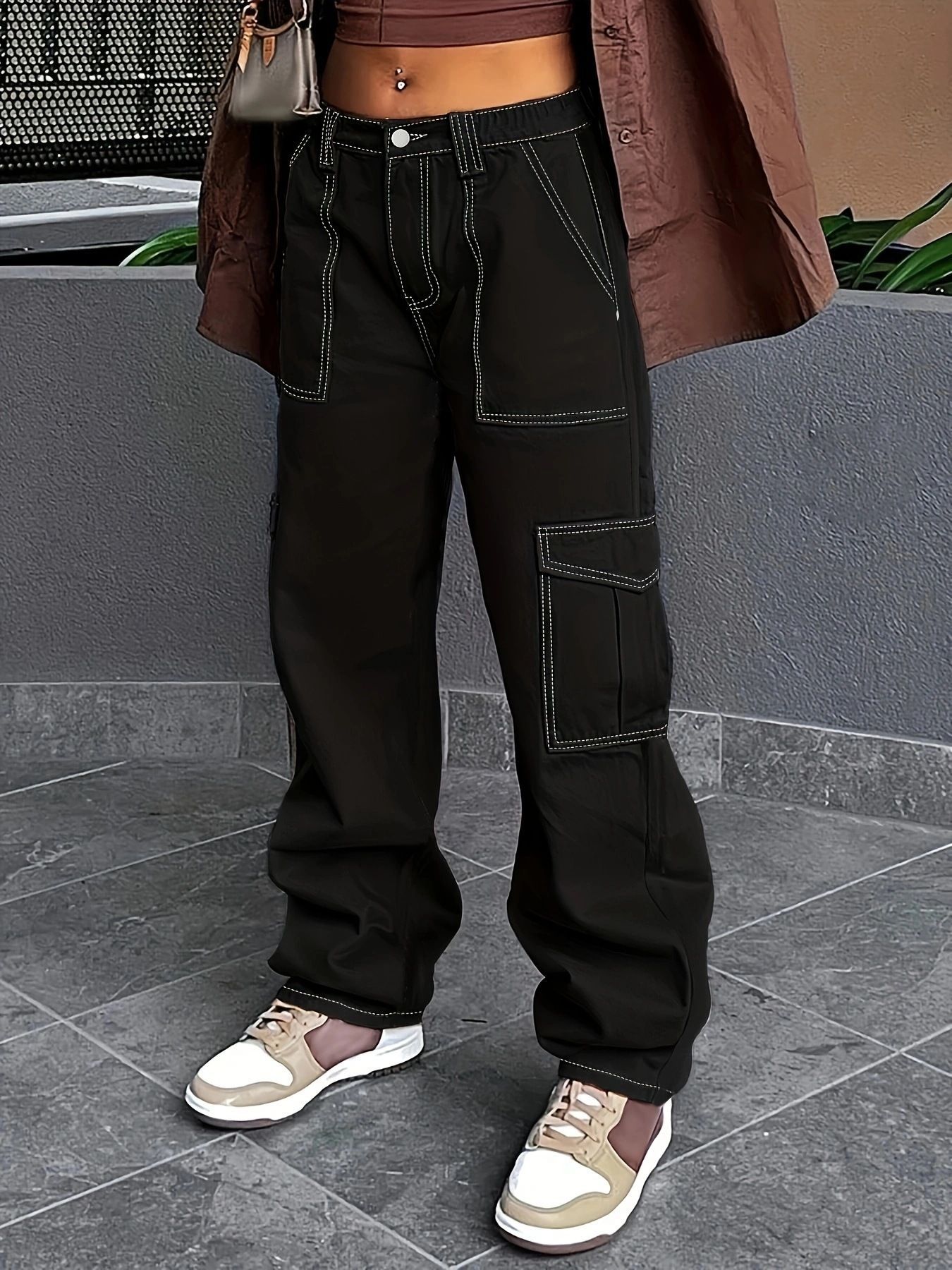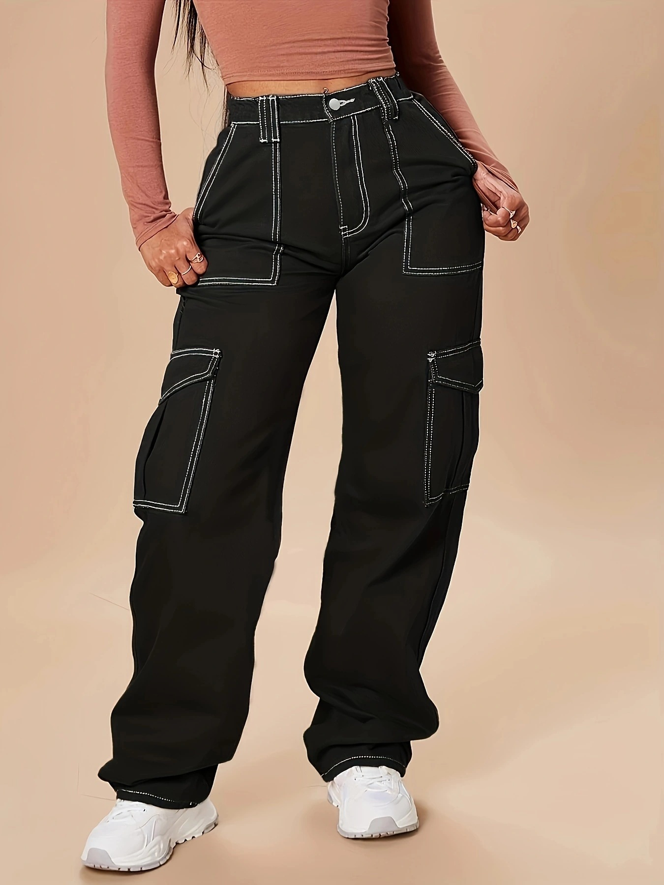 유럽과 미국의 AliExpress 국경 간 패션 맞춤형 거리 느슨한 와이드 레그 작업복 멀티 백 여성 청바지를 기원합니다스토어 가기