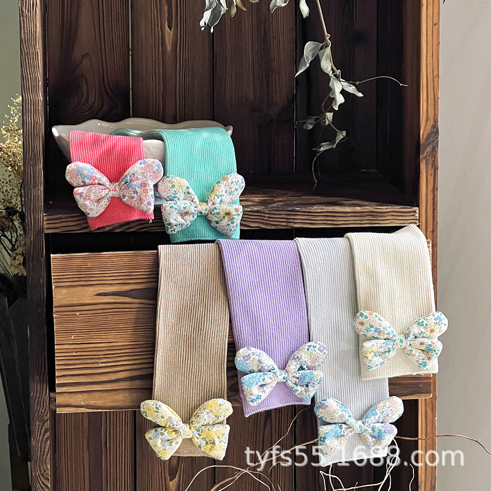 名称:韩系女童中筒袜24年春款儿童小腿袜子立体碎花结细条无跟堆堆棉袜