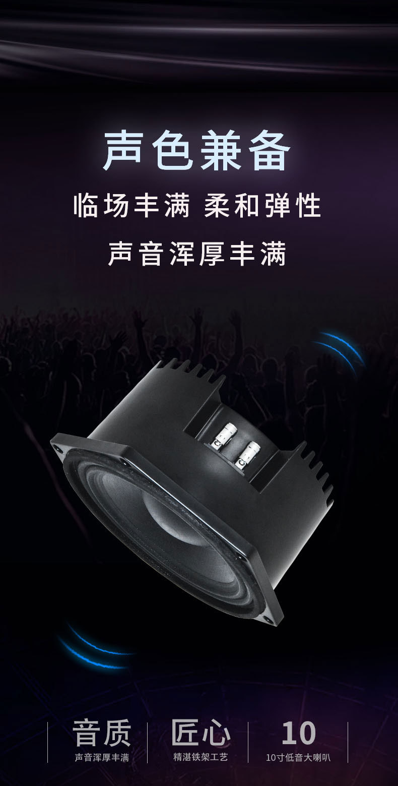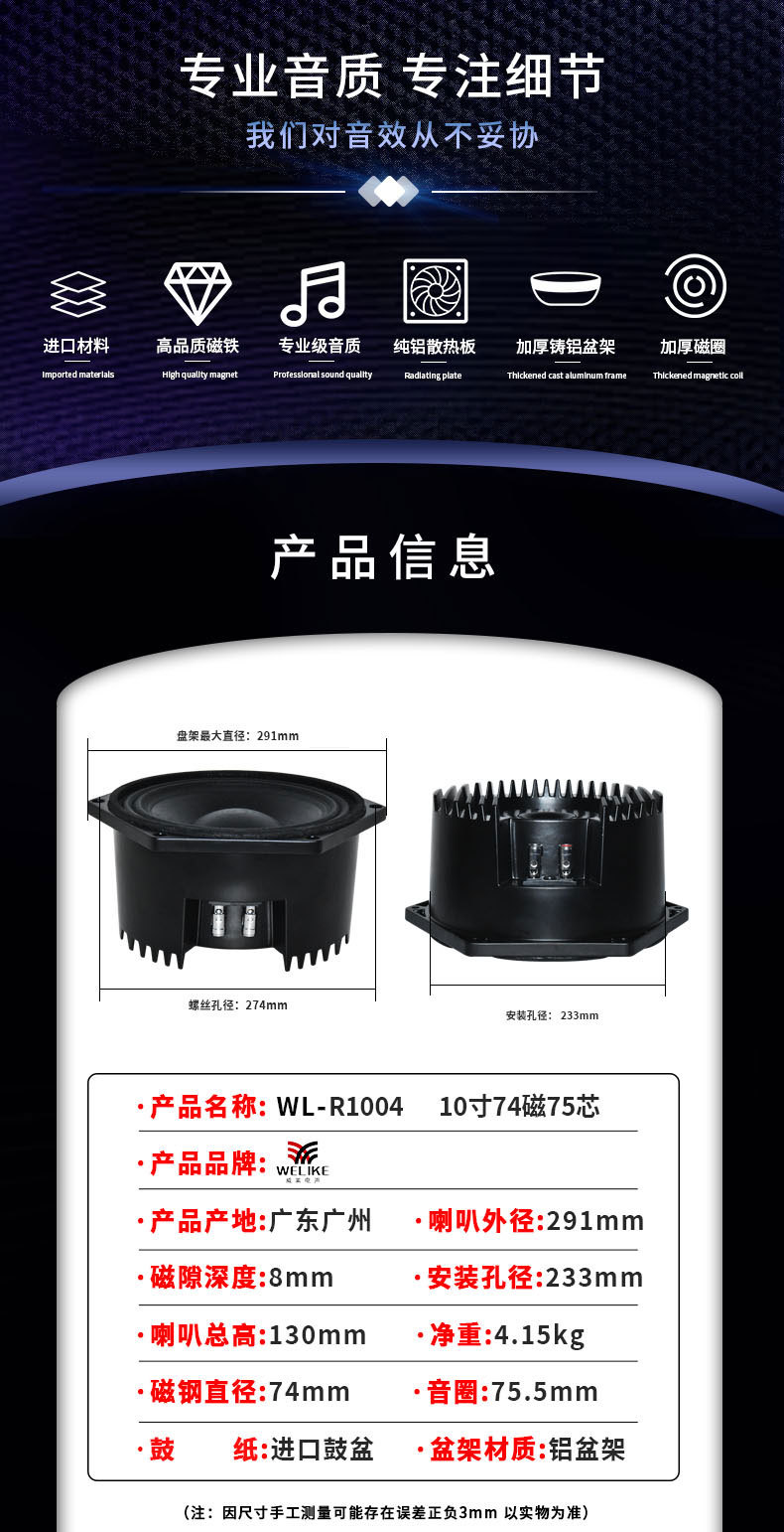 • 10 인치 중거리 육각형 알루미늄 프레임 네오디뮴 마그네틱 더블 링 통기성 천 75 코어