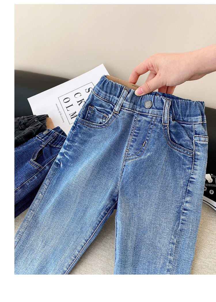 2025 새로운 소년 청바지 봄, 가을, 겨울 스타일 스트레치 아동 의류 소년 플러스 벨벳 느슨한 얇은 긴 바지