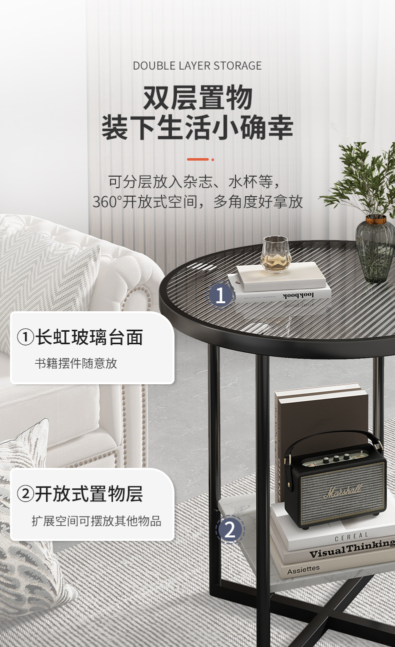 边几沙发边柜床头柜置物架铁艺客厅小茶几小圆桌子茶桌家用小茶台