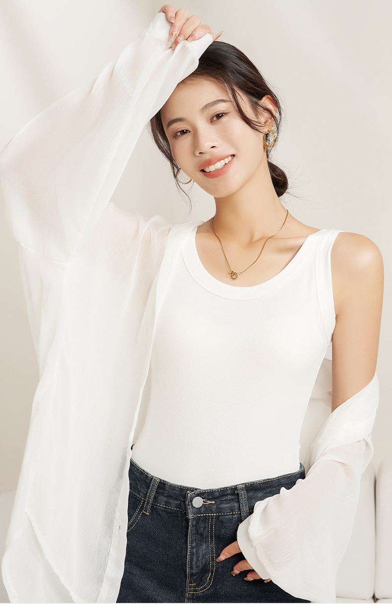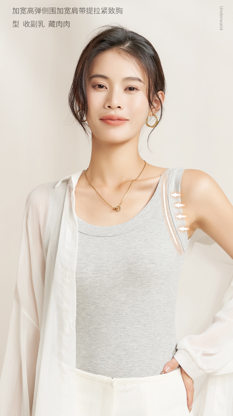 여성용 모달 실 캐미솔 여성 여름 슬림 핏 슬리밍 외부 민소매 탑 하향링 셔츠 노출 방지